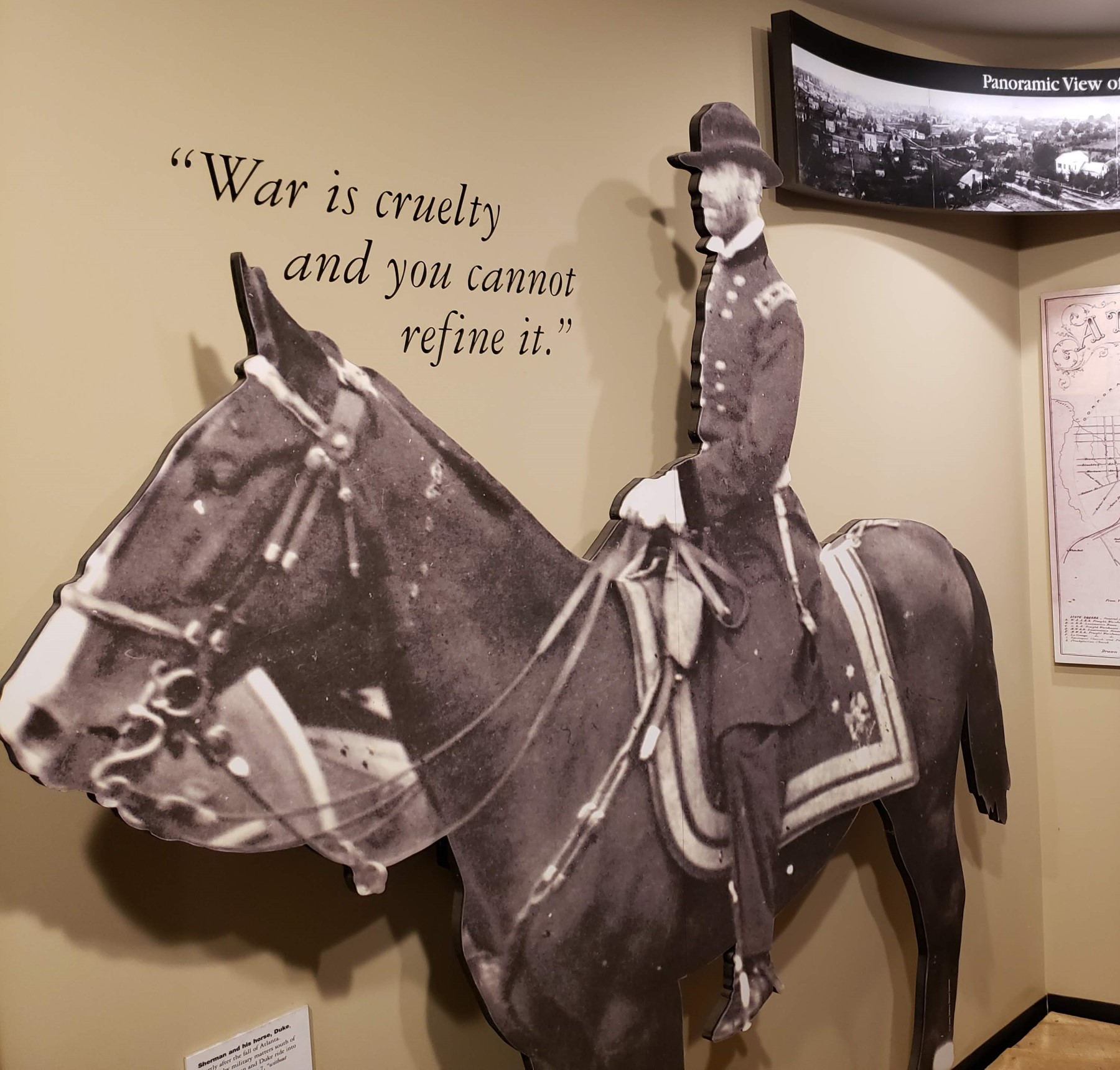 After a stop for donuts, our final planned Georgia attraction wasn’t far away — Kennesaw Mountain, slightly northwest of Atlanta. Apparently it comprises a Big Kennesaw and a Little Kennesaw Mountain, though we weren’t really given reason to distinguish the two. Once upon a time in June 1864 it was the scene of the Battle of Kennesaw Mountain, Major General William Tecumseh Sherman’s final frontal assault against the Confederate forces before he and the Union’s Military Division of the Mississippi worked their way around and onward toward their headlining march through Atlanta and beyond into the rest of Georgia. As Sherman himself would write three months earlier, “All that has gone before is mere Skirmishing — The War now begins…”