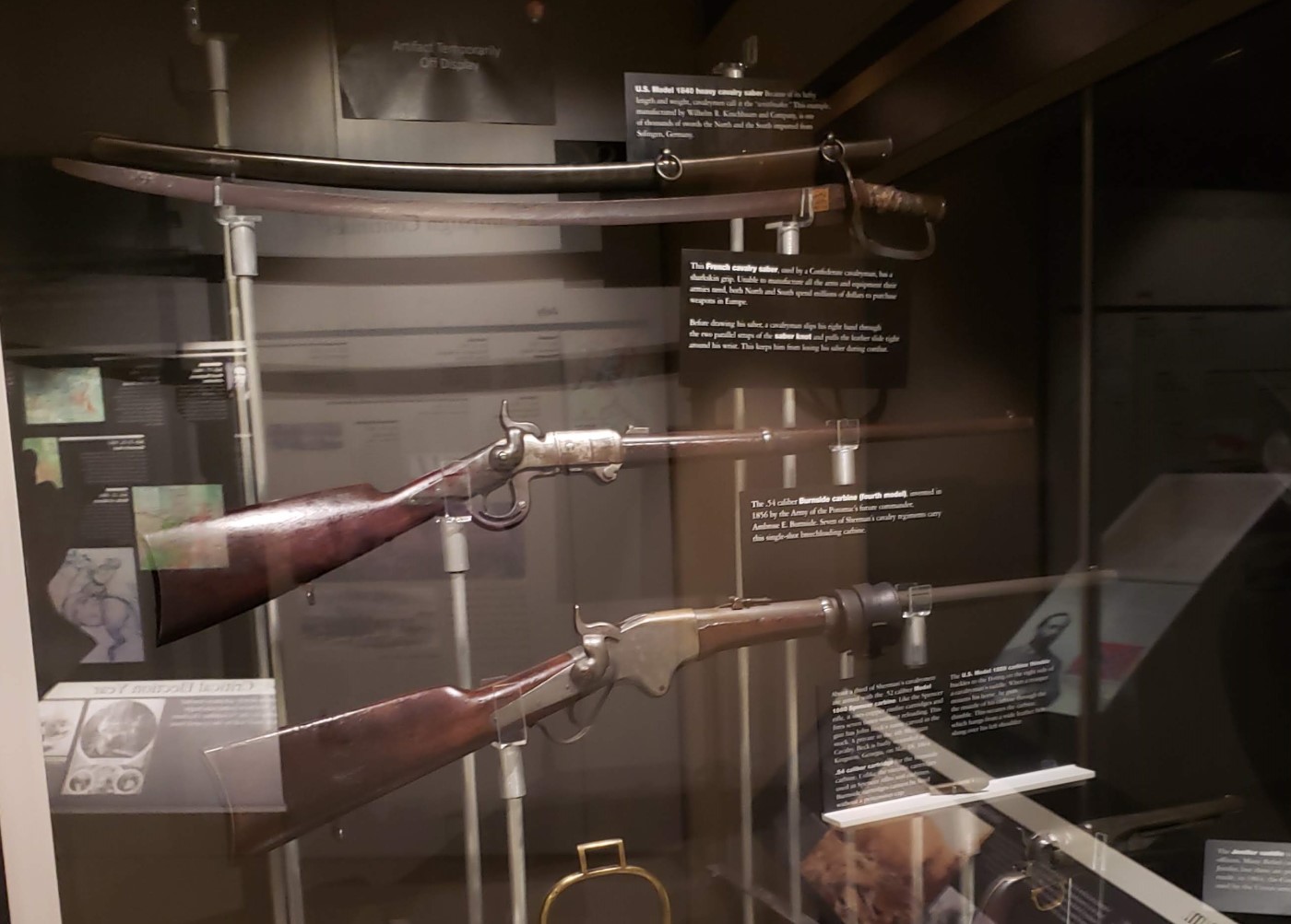 A couple hundred other cars were already in the overflow, therefore relegating us toward the way, way back. We parked, walked back to the entrance, walked back up the road we’d just driven, and reached the Visitors Center a few blocks away. Their website lists the overflow lot as being 1/10 of a mile away, which is accurate from the as-the-crow-flies measurement standard, but the footpaths were more than triple that. Inside the Center, the extremely friendly gentleman at the front desk gave us a copy of the park’s official brochure map and touted Kennesaw as the busiest park in all of Georgia. And that’s all he offered, which offhand seemed plenty. Also inside, a series of exhibits offered a small Civil War museum of sorts for value-added context.