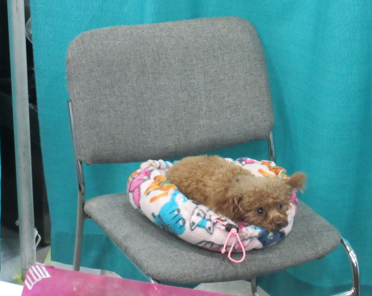 Value-added special guest at Day’s booth: this adorable doggo named Flower who has an Instagram account and who makes Baby Yoda look like the Toxic Avenger.