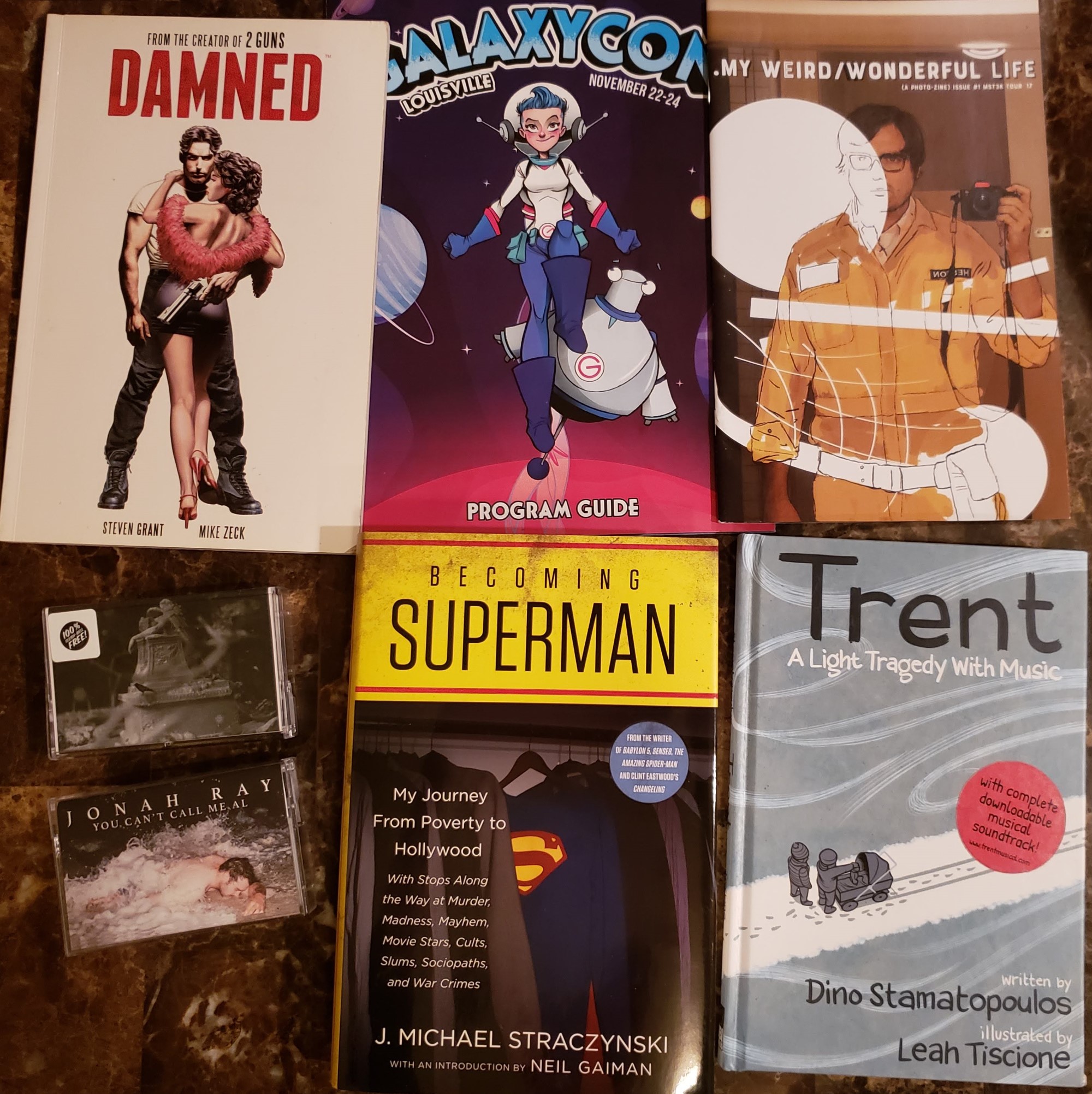One more entertainment GalaxyCon loot!guest, with feeling: Dino Stamatopoulos! I first knew him as part of the writing/producing staff behind the late, lamented Community, second only to his recurring role as Alex a.k.a. “Star-Burns”, the most aptly nicknamed student at Greendale. Beyond that show, which I’d praise at length here if I hadn’t already used up all my best adjectives in this entry, Stamatopoulos went on to create Adult Swim’s Moral Orel, as well as co-found the multimedia company Starburns Industries, which has made comics I’ve liked as well as the Oscar-nominated animated film Anomalisa (of which I was a Kickstarter backer). He also sings and plays in a band called Sorry About Everything, named after an erstwhile podcast.