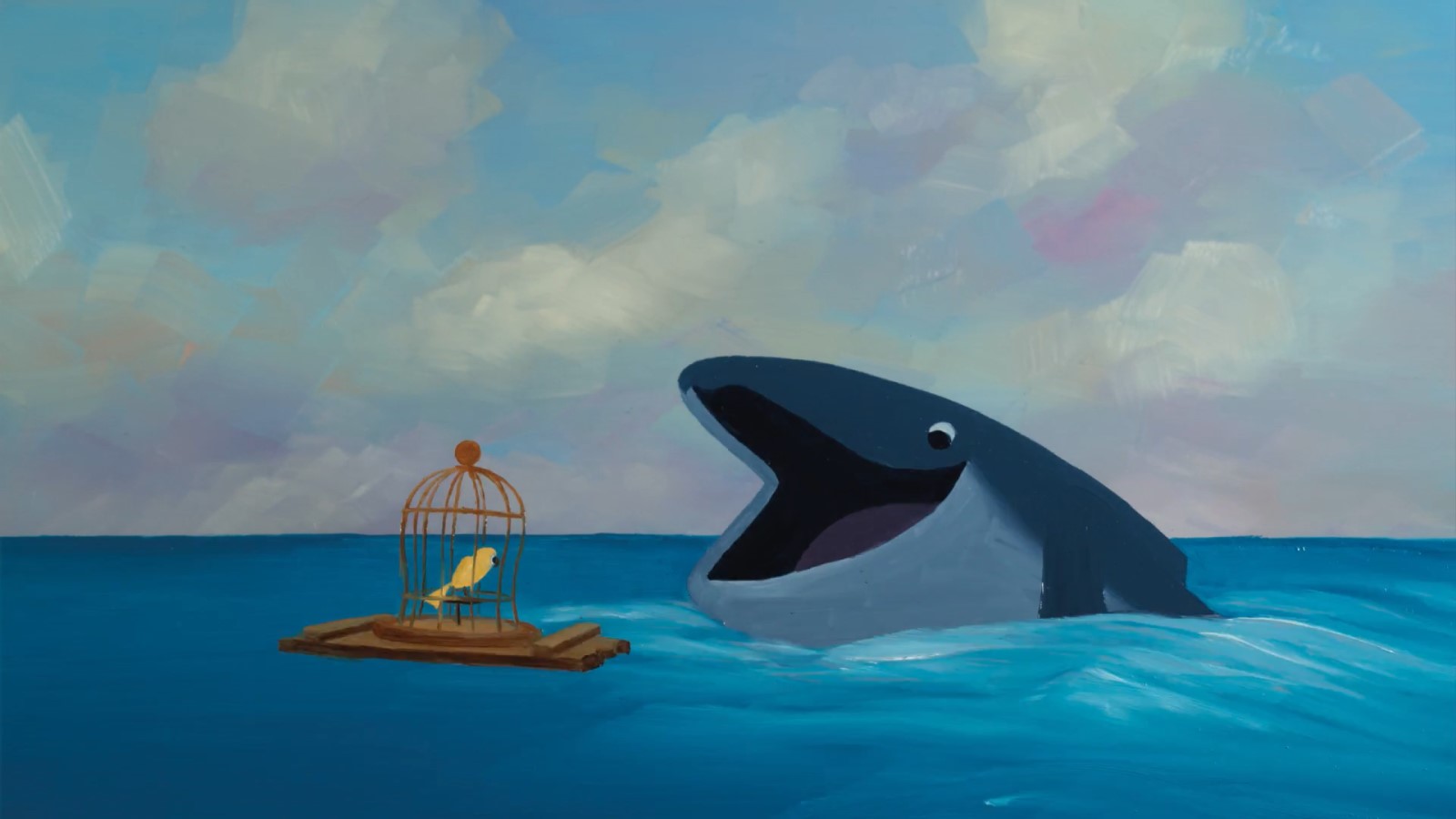 * The Bird and the Whale: Unlikely friendship is struck up between a happy-go-lucky whale and a caged bird left adrift from a shipwreck. 4300 paintings were rendered using the same piece of glass over the course of fourteen months, altered or in some cases erased before proceeding to the next one. Gorgeous to watch, but heartbreaking on more than one level.