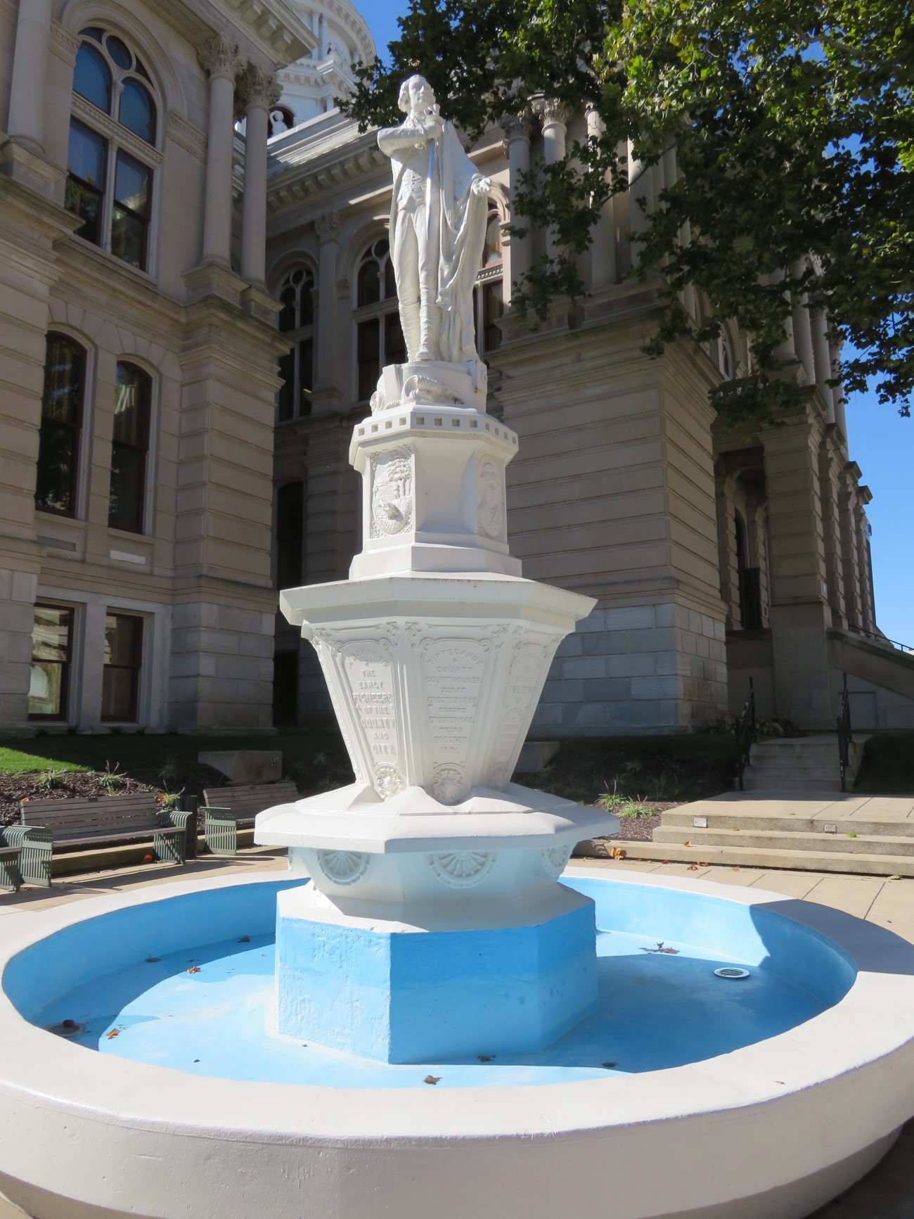 A fountain honoring John Purdue (of that Purdue), which probably looks cooler when it isn’t October and they’re allowed to turn on the water.