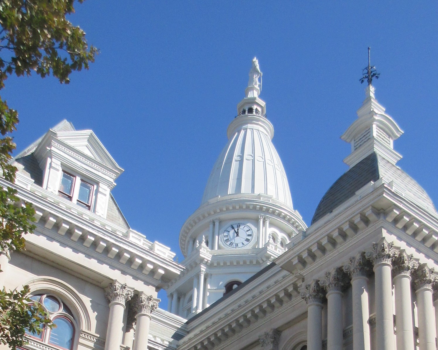 This statue atop the Courthouse was once Liberty armed with a sword and shield, but the shield was replaced with scales. So now she’s Liberty and Justice for All, I suppose.