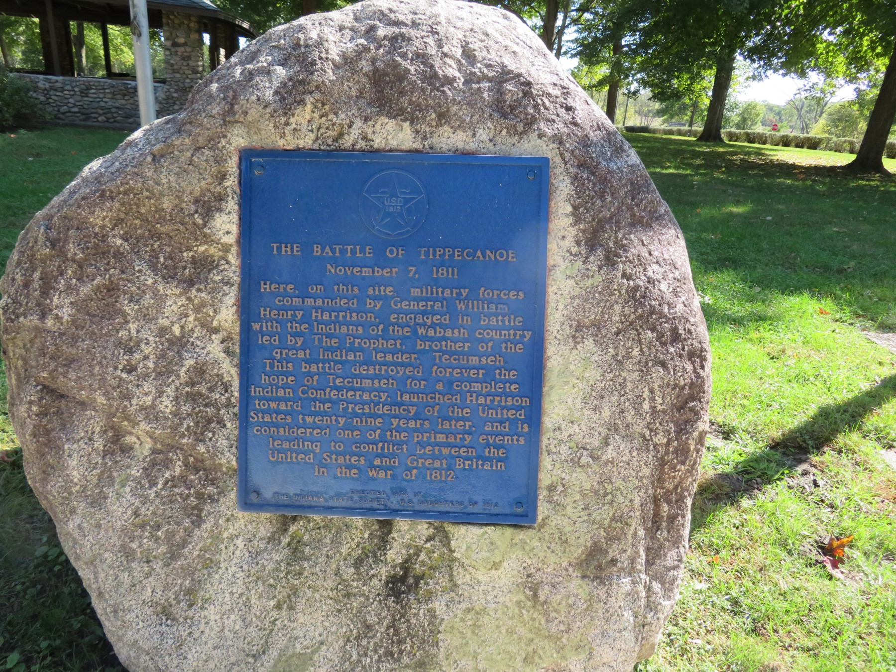 Down the road from the city of Lafayette was our next stop, the Tippecanoe Battlefield Museum. On November 7, 1811, when future short-term President Harrison led an army against a confederation of tribes led by Tecumseh of the Shawnee and the adviser Tenskwatawa, alias “the Prophet”. The tribes weren’t thrilled with the pervasive intruders, the incoming settlers had reason to believe they weren’t safe, and it didn’t help that our old arch-nemesis England was taking steps to ratchet up the tension shortly before things escalated into the War of 1812. Harrison led a thousand men into two hours of combat against several hundred Native Americans. The latter retreated after dozens of casualties were incurred on each side. The following day, Harrison led his men to Prophetstown, where their opponents had been living but fled. On orders from Harrison, Prophetstown was burned to the ground, and the former residents’ supplies either appropriated or destroyed.