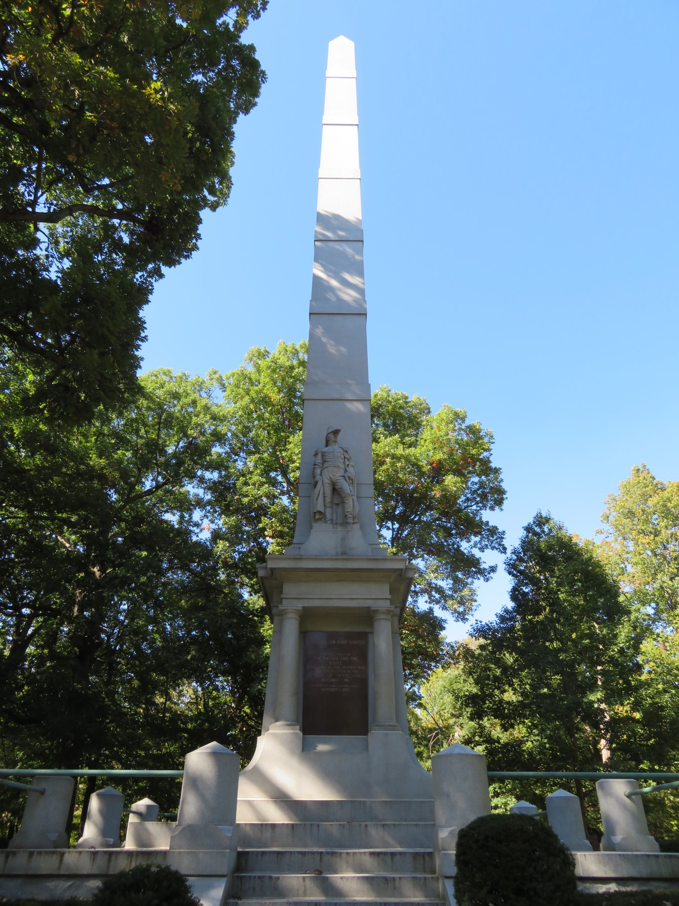 The most prominent battlefield feature is an 80-foot obelisk commissioned by the Indiana General Assembly in 1908. Engraved on the sides are the names of the white guys who died that day.
