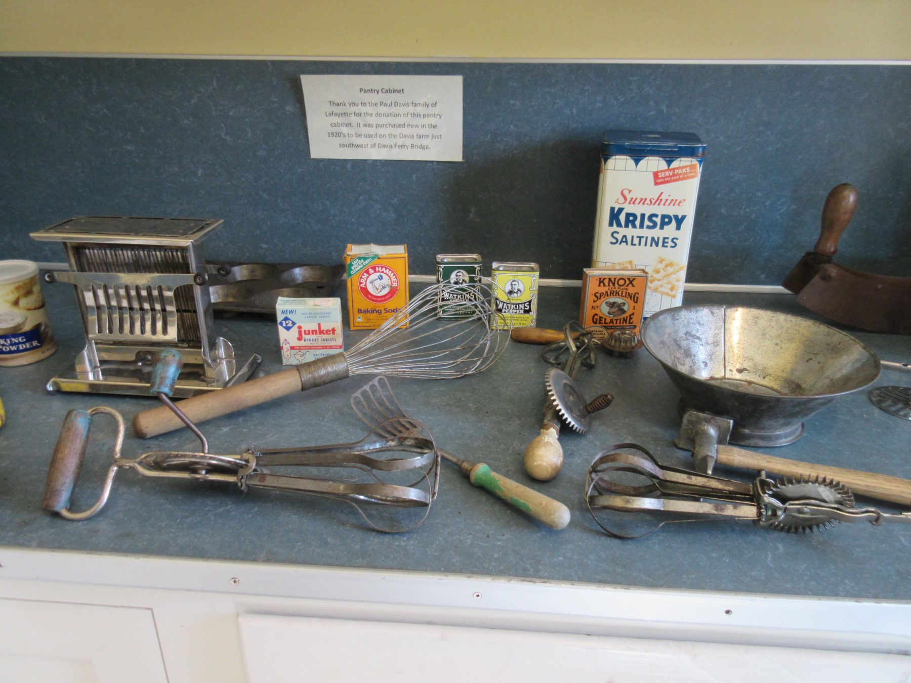 Sample 1920s cookware in the farmer’s wife’s kitchen.