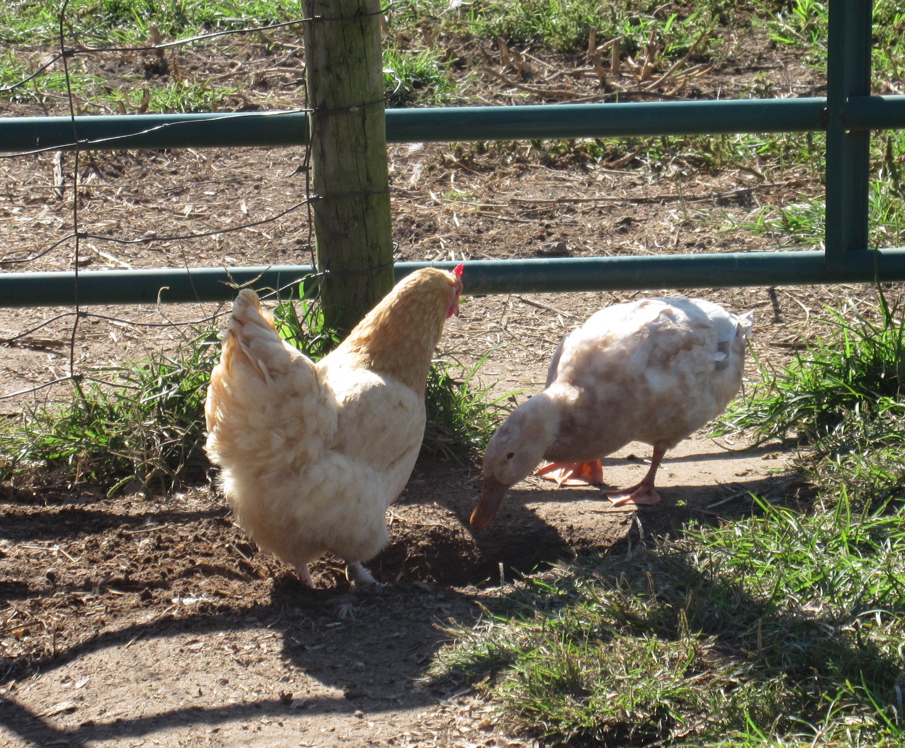 Duck and chicken apparently conspiring against their oppressors, not unlike the fourteen tribes once did.