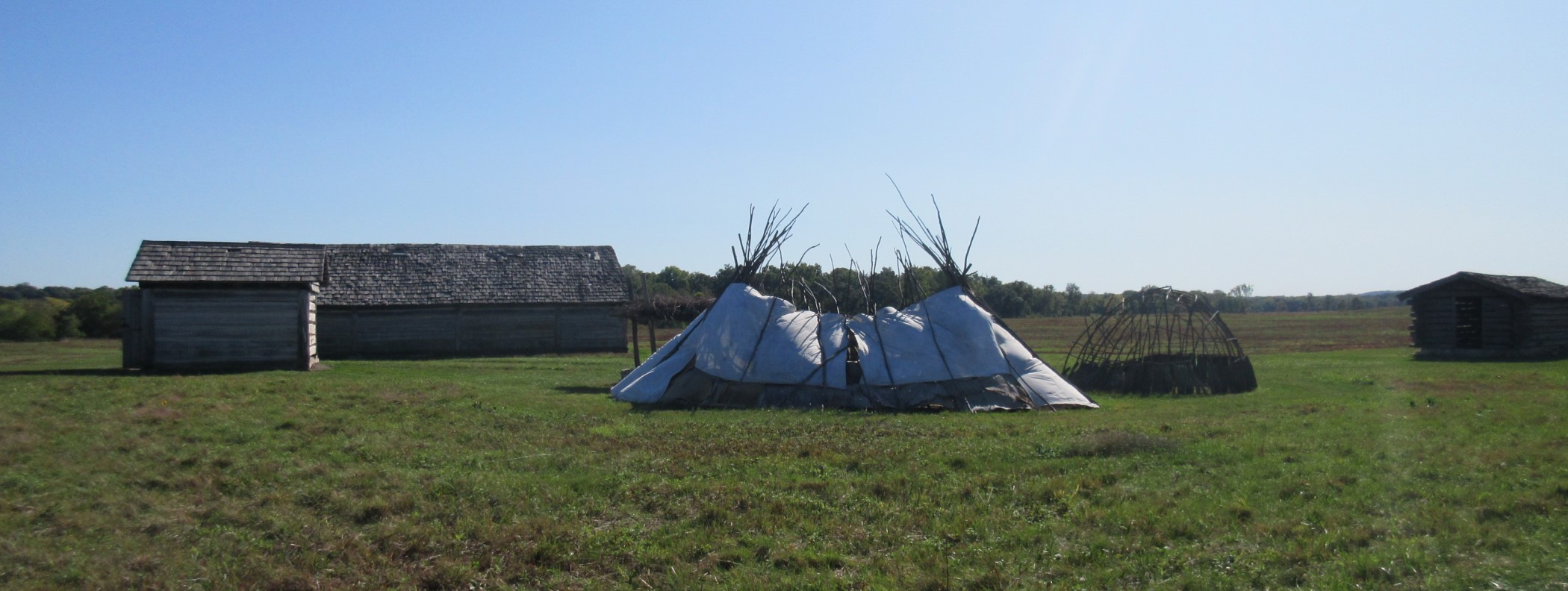 A walking trail leads from the Visitors Center across busy State Road 225 and toward a grassy field where a “Woodland Indians settlement” recreates various structures common to tribal life back in the early 1800s. Fixtures include a Chief’s Cabin, a Medicine Lodge, and a Council House. They mostly looked like unfurnished log cabins, but a few placards help sort them.