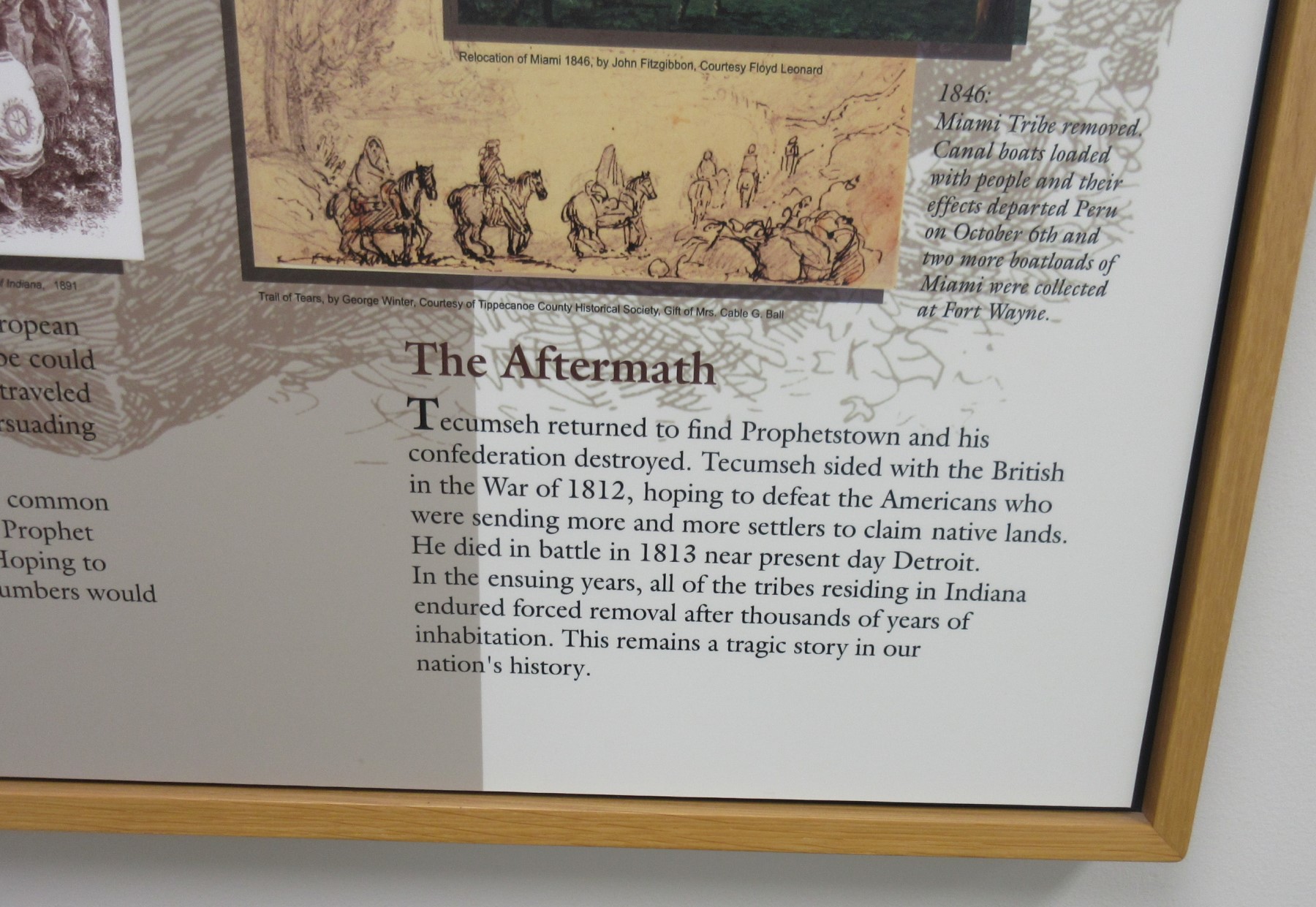 The requisite contextual signage regarding Indiana environment and history dedicates a paragraph to the aftermath of the Battle of Tippecanoe.