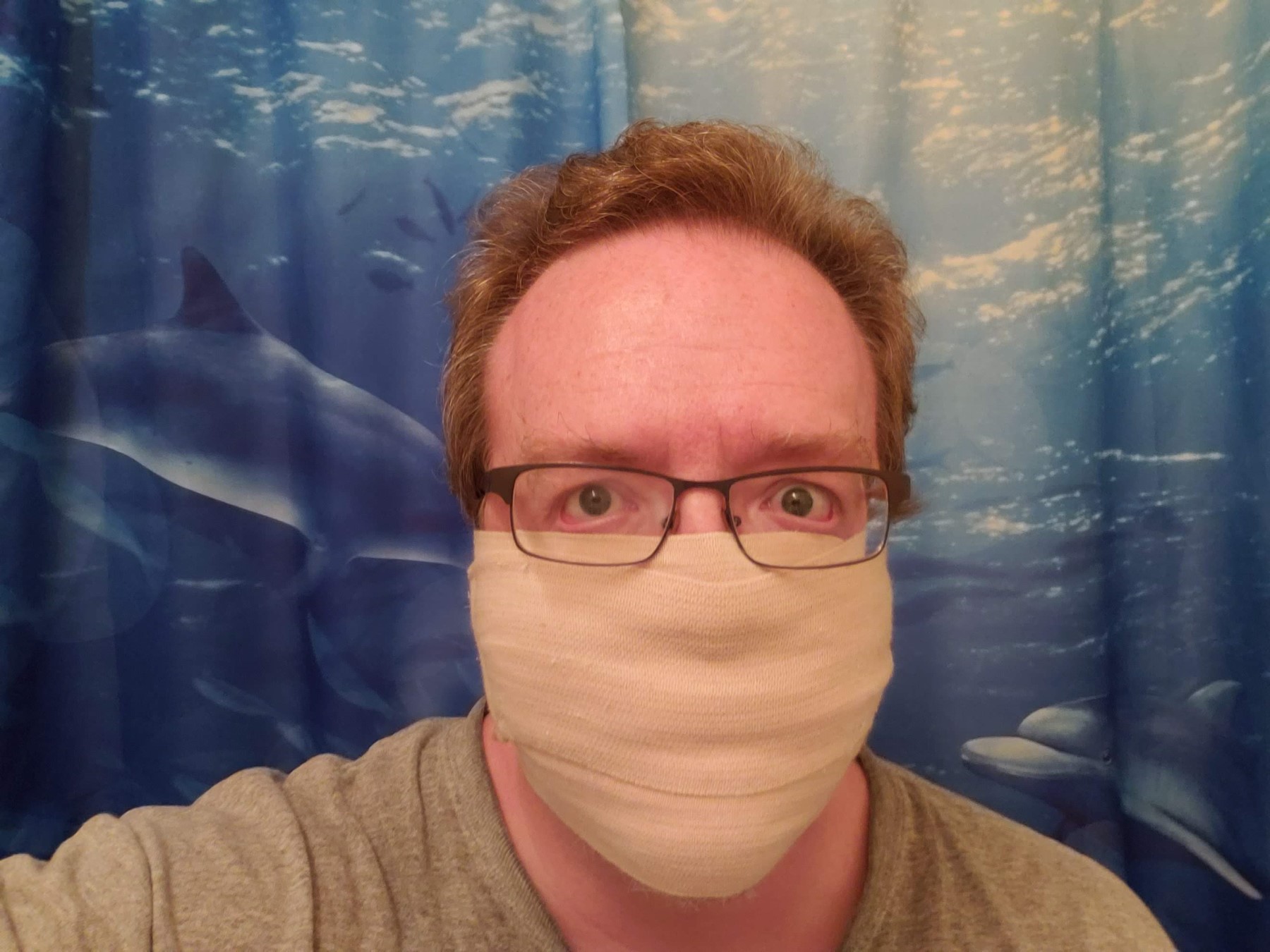 We have a few items around the house I could conceivably wear as facial coverings. Results vary.