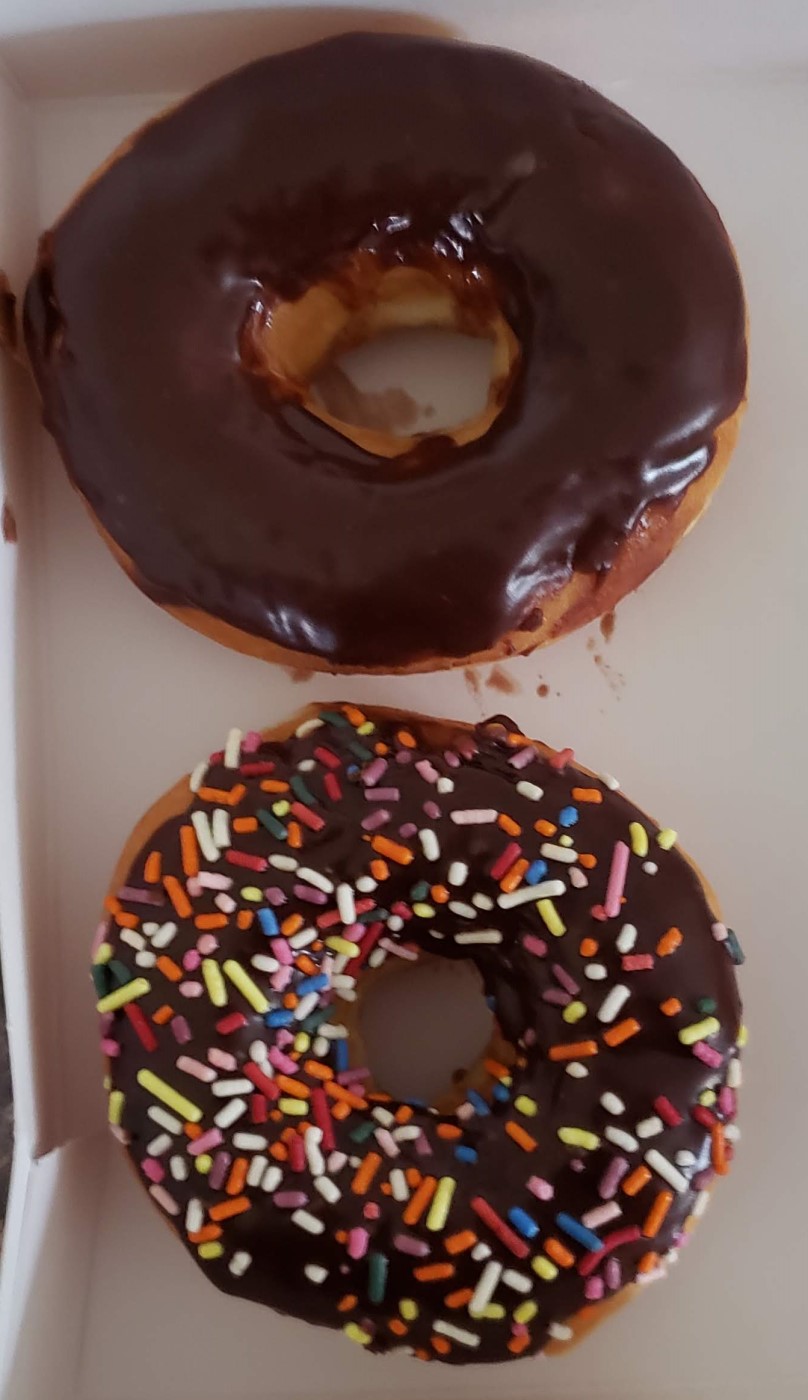 Breakfast from Dunkin Donuts, representing the junk food that often gets us through many a grueling convention day.