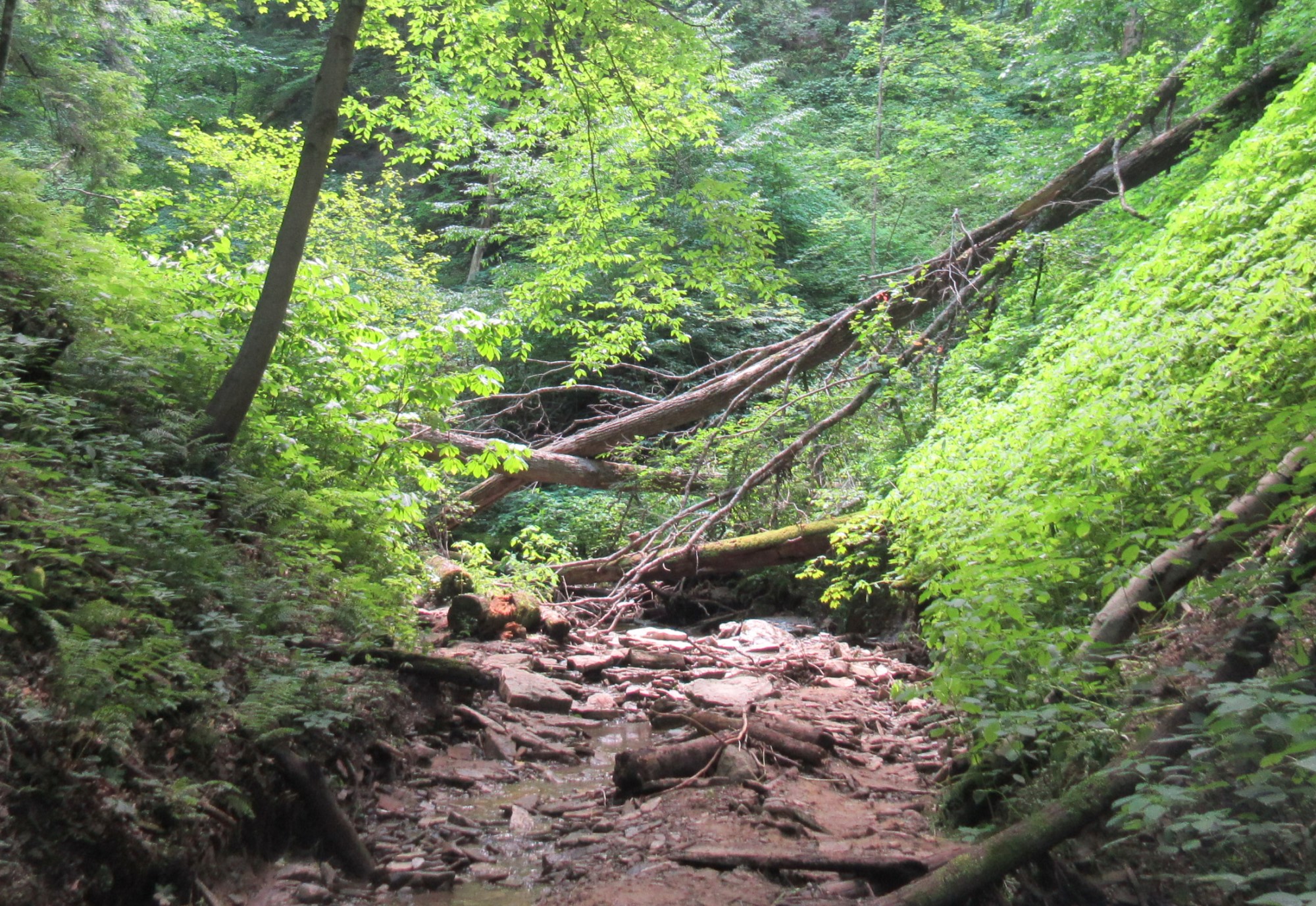 Thus we chose to turn around and retreat the way we came. At least we knew what to expect, the proverbial option of going with the devil you know. We took it extremely slowly. I let Anne set the pace. We stopped any and every time she felt like it. The downhill version of the creek was slightly less taxing, but not a relief.