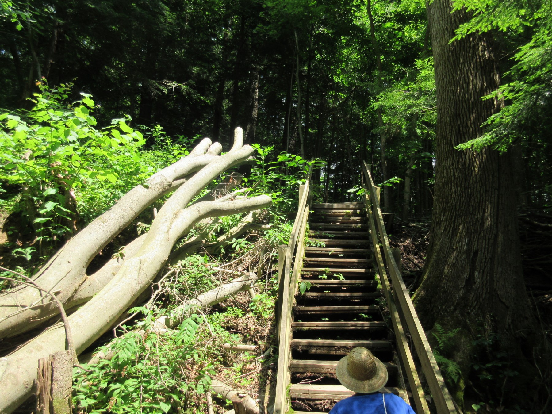 After descending many, many, many flights of stairs, later that day at the bottom of the hillside Trail #2 took a sharp right turn and began heading up a creek at a steady incline.