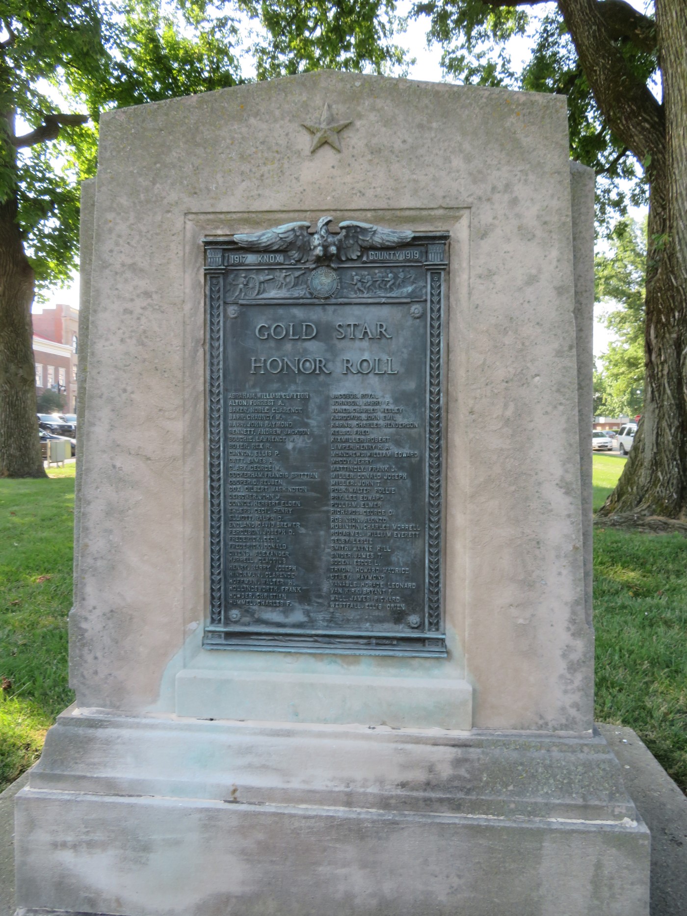 Among the topic-adjacent features in George Rogers Clark National Historical Park was this monument to Knox County veterans who served in World War I.