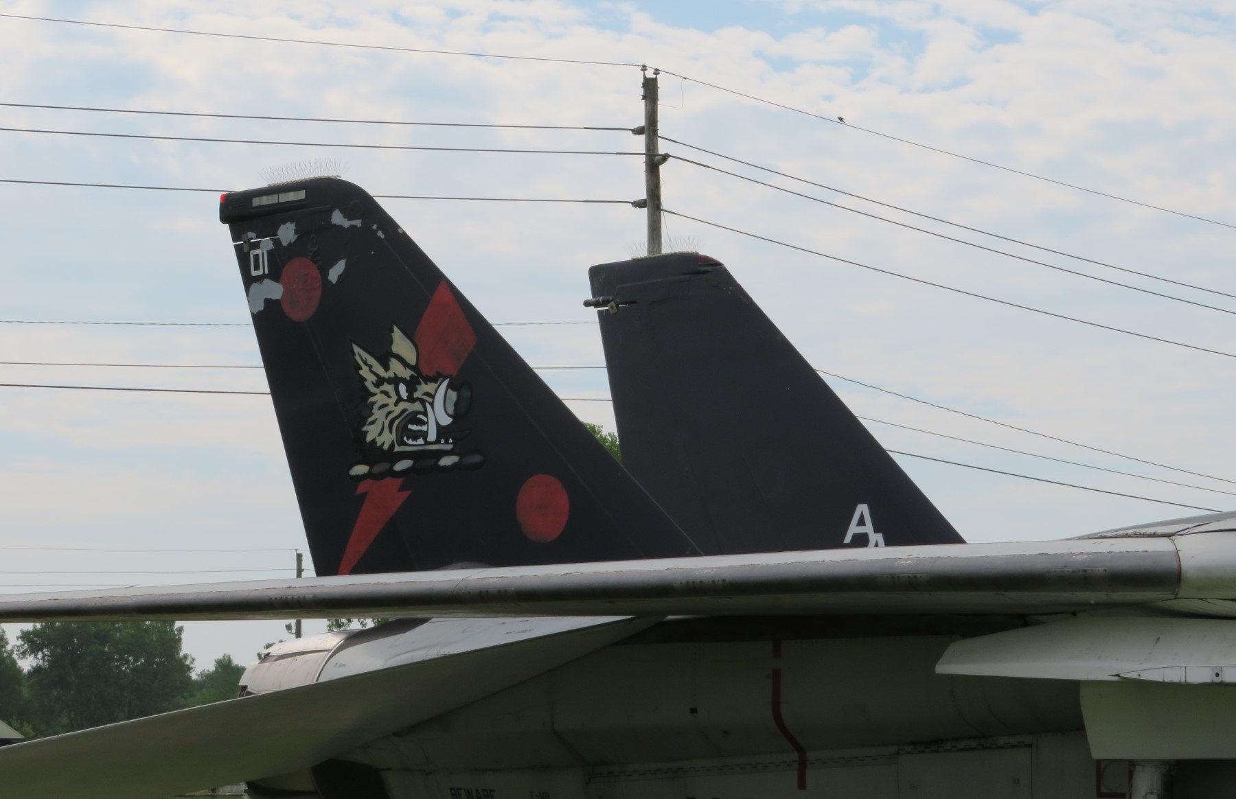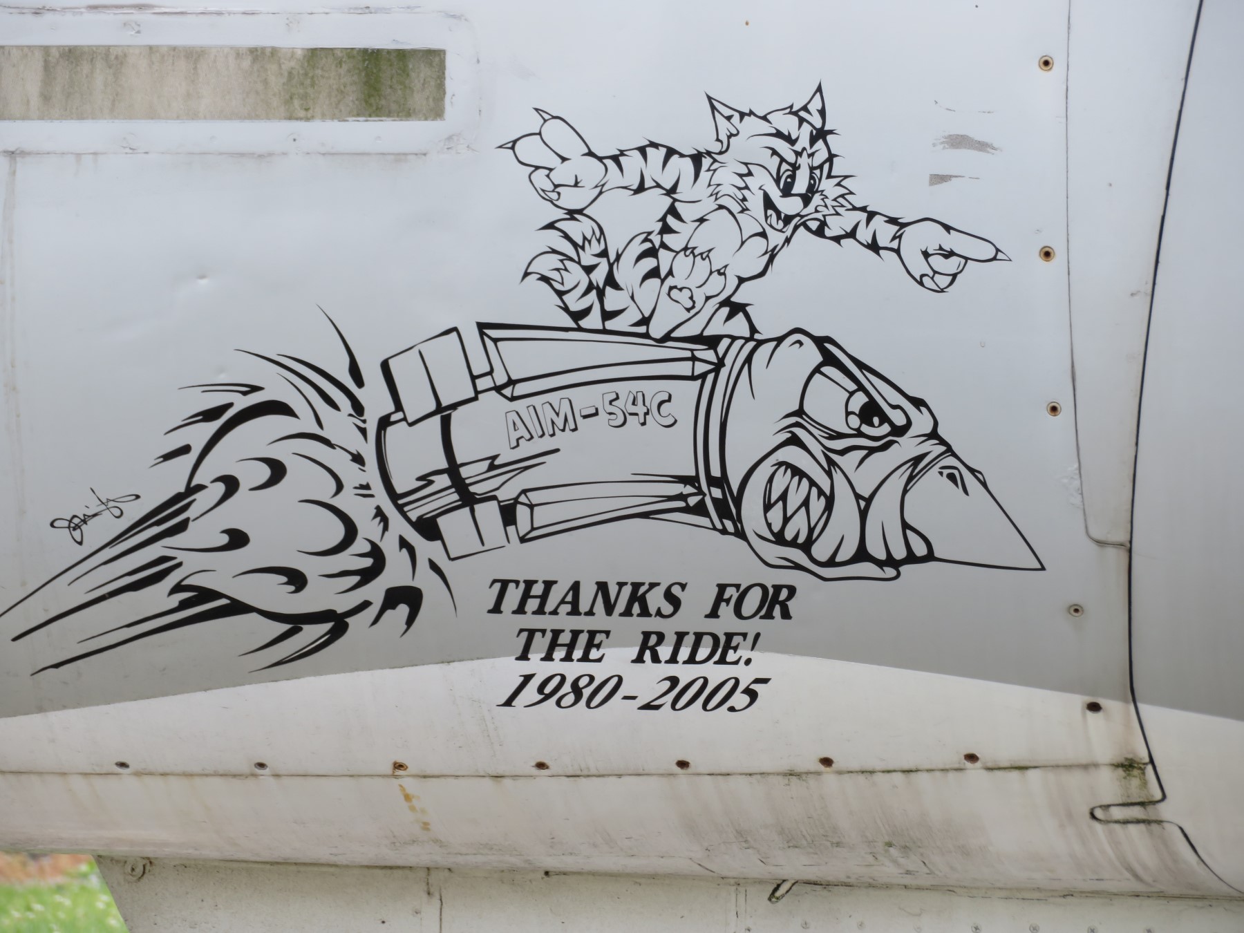 On loan from Pensacola, the Grumman F-14B is an upgraded version of the Tomcat. The latter was famously featured in such films as the original Top Gun.