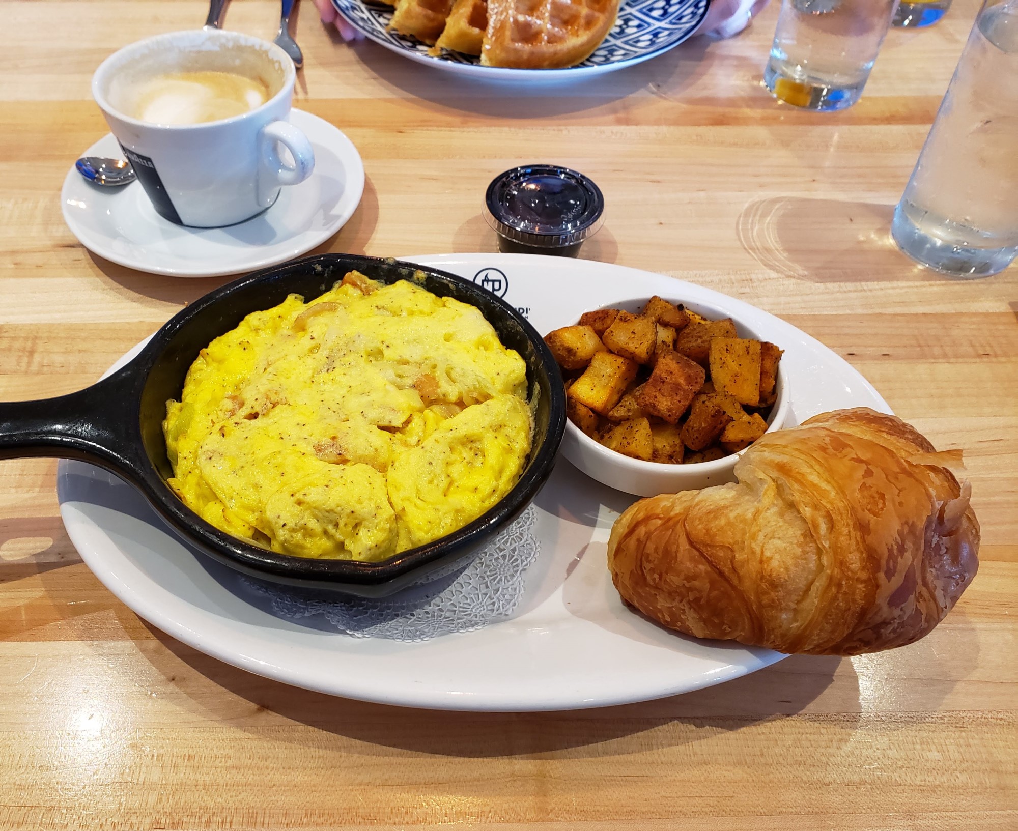 Each of their Frittatas all’Uovo (a phrase which here means “made of eggs”) have a woman’s name. My choice, the Anna (see what I did there?), contained smoked salmon, caramelized onions, leeks and mascarpone. Served with roasted potatoes and a croissant. I can never have enough croissants. We’re not allowed to have croissants on the west side.