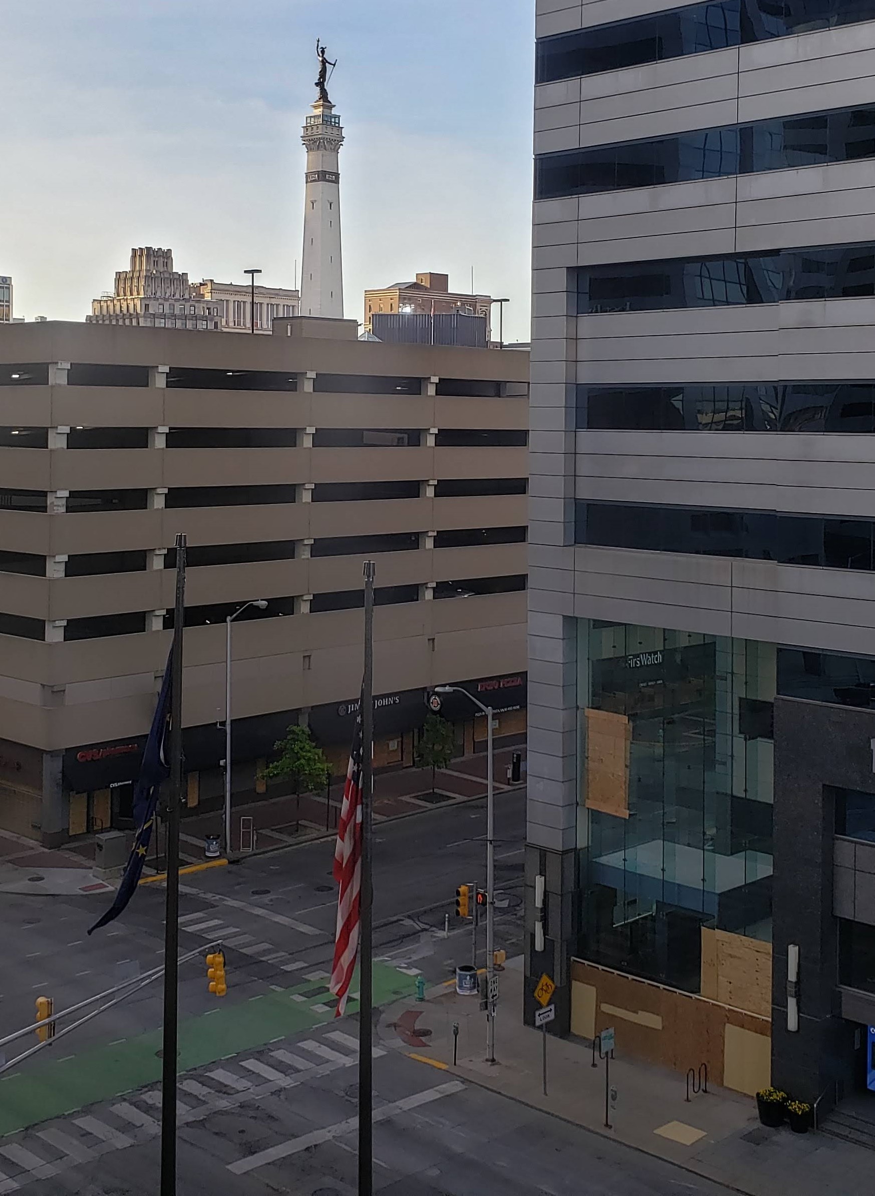 [One Friday) numerous folks had flocked downtown for a peaceful protest against police brutality and/or racism in the wake of recent tragic murders and deaths nationwide involving police. (Here’s a link to Indianapolis’ own. It’s absolutely, jaw-droppingly unconscionable that major cities seem to be collecting these cases.) By all accounts the part of the evening when the organizers organized things organizationally went well. Then folks lingered after closing time, after the time frame that the organizers were accountable for, and things stopped being peacefully organized. Rioting ensued. Some businesses took damage, including my own workplace. Pepper spraying and sirens abounded. Local reporters live-tweeted their photos, video, and firsthand accounts of the bedlam as best they could from within while choking and trying to keep their eyes clear.