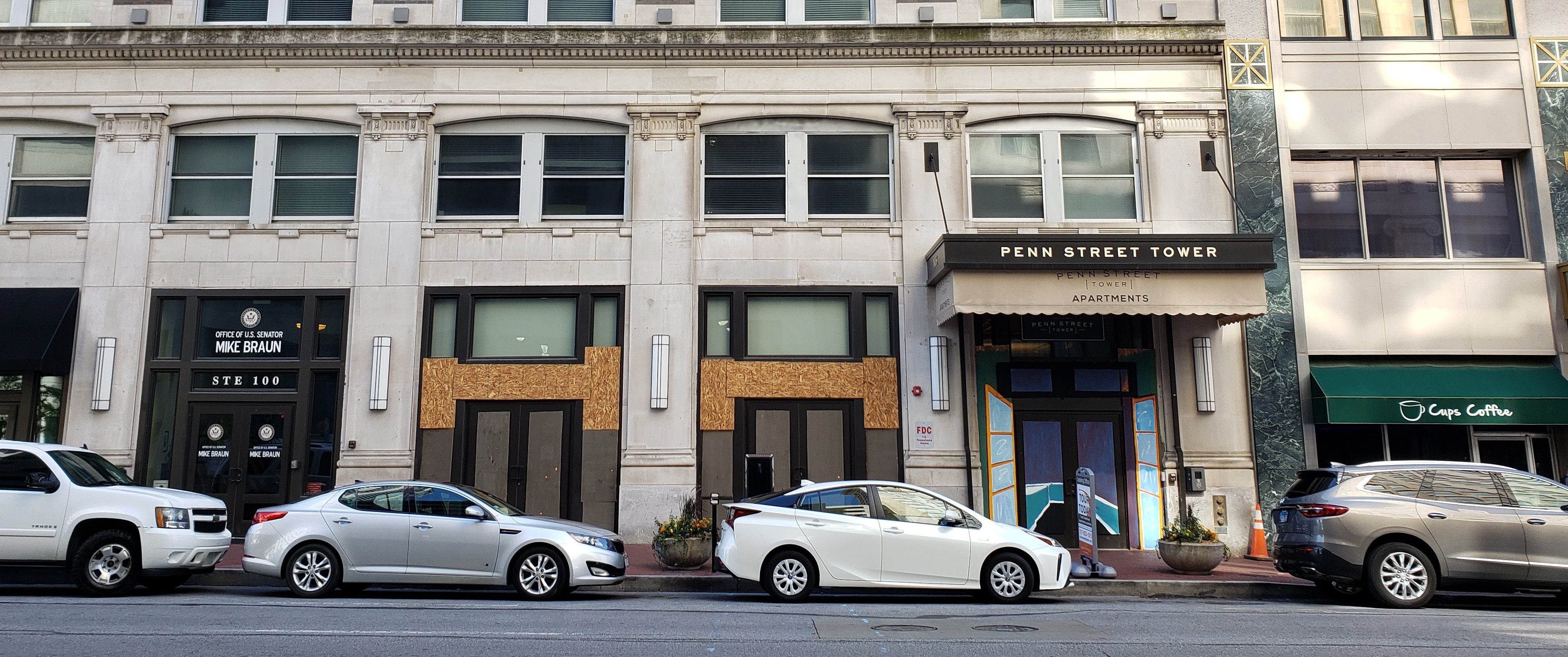 After the restrictions were lifted, I took my first downtown walk in a good while for a simple lunch run. I already posted photos from that excursion, by which point many businesses were still in cleanup mode — waiting on insurance, or on overworked window replacement companies, or on economic miracles to save them. Things were calm enough that at the food court I was worried less about rioter ambushes and more about poorly masked COVID-19 deniers roaming the nearest food court. Not quite back to normal — more like back to the interim normal.