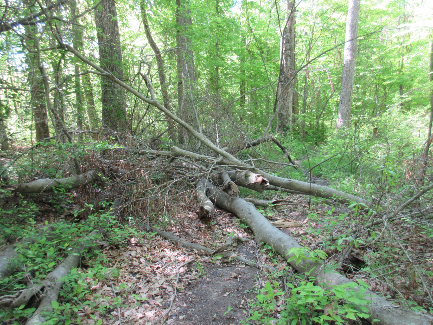 …beginning Friday the 14th, when we headed southeast of Indianapolis to Muscatatuck National Wildlife Refuge, the oldest of Indiana’s three federal wildlife refuges. The wildlife welcome wagon was small and sedate, but we also found serenity and light exercise in and near the pretty scenery, dense woods, springtime flora, distant singing birds, reflective bodies of water, and easy trails, one of which was an ADA-compliant loop called the Turkey Trail, laid down through the greenery around the visitor center. Gentle times far from big-city life.