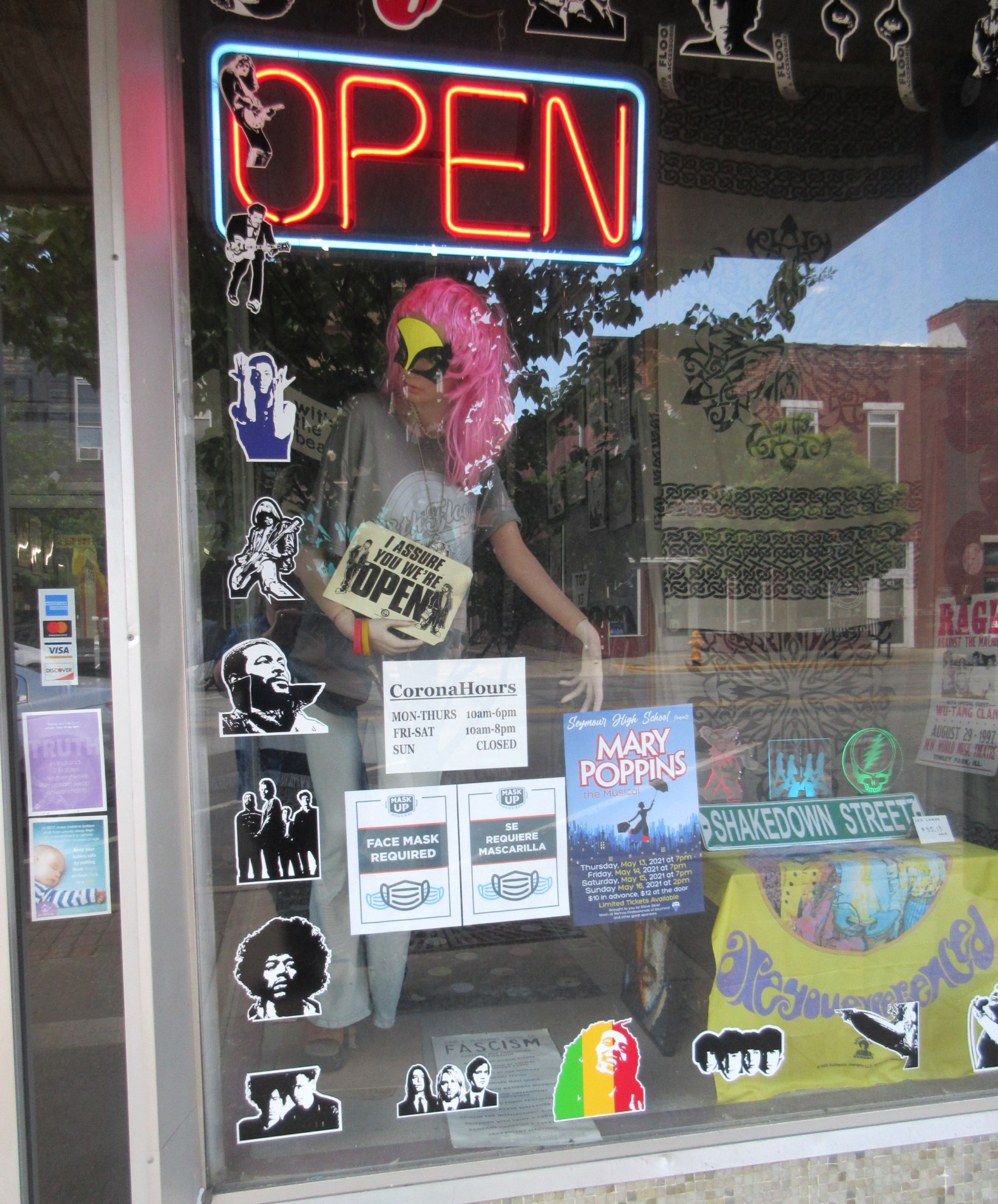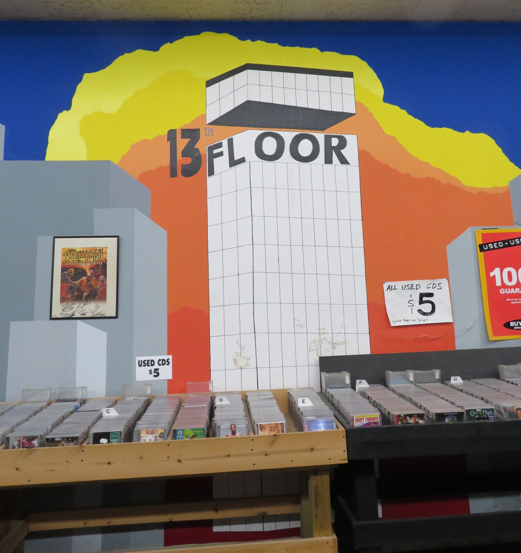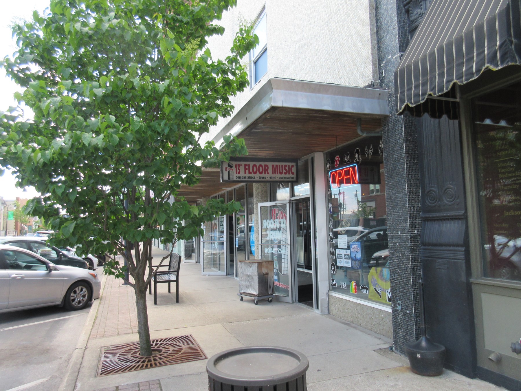 By the time we finished our meals and finished soaking in the welcoming, sunlit ambiance, our free time and our energy levels were running low. (We to return home in time for an evening engagement.) On our way back to the car, in my capacity as Birthday Guy I authorized one detour before takeoff — to the local record shop, 13th Floor Music. A Seymour staple since 1995, they’re the sort of physical-media purveyors I’m finding myself looking up more and more whenever we travel. They had me at their Facebook page’s proclamation “OLD SCHOOL OR NO SCHOOL.”