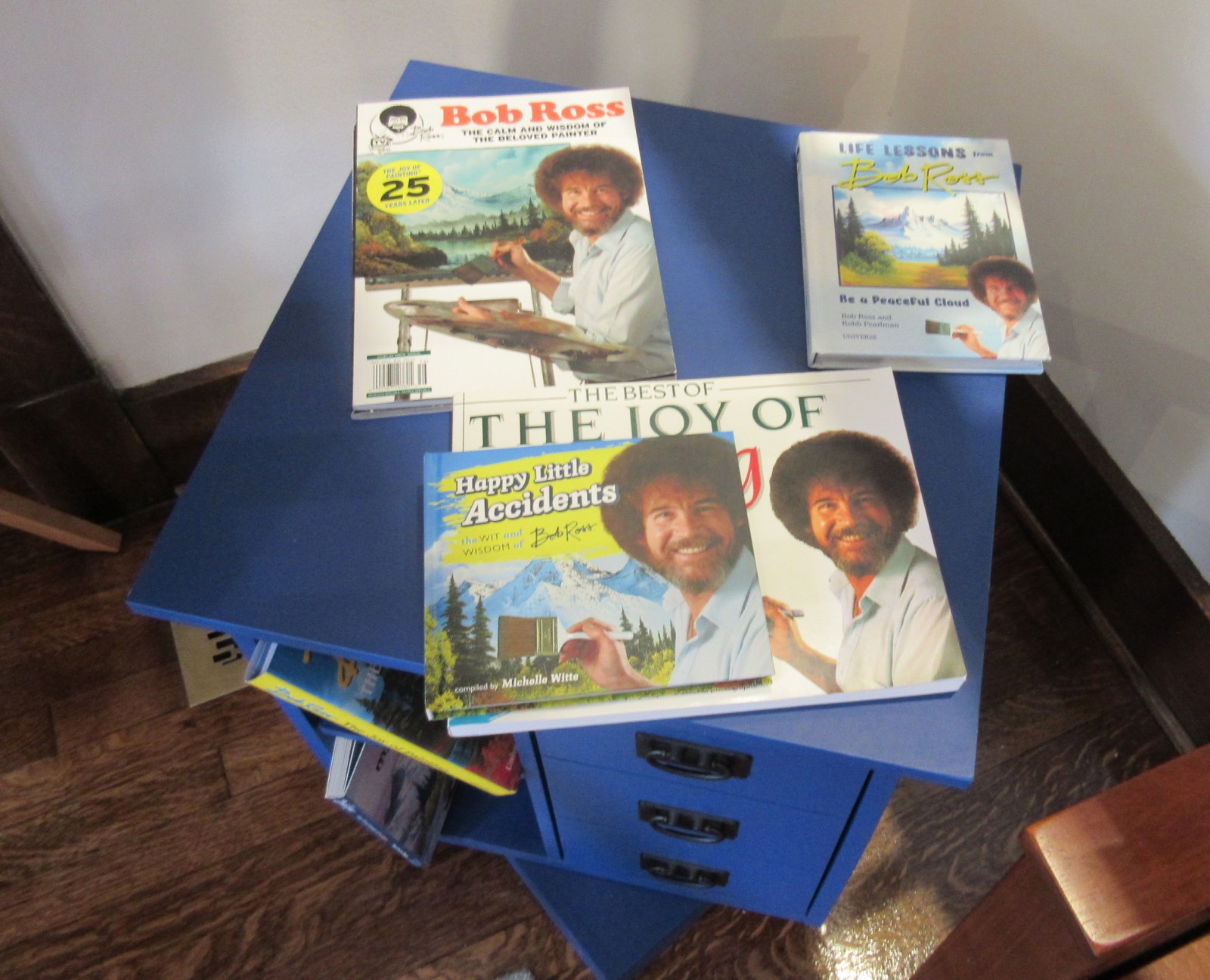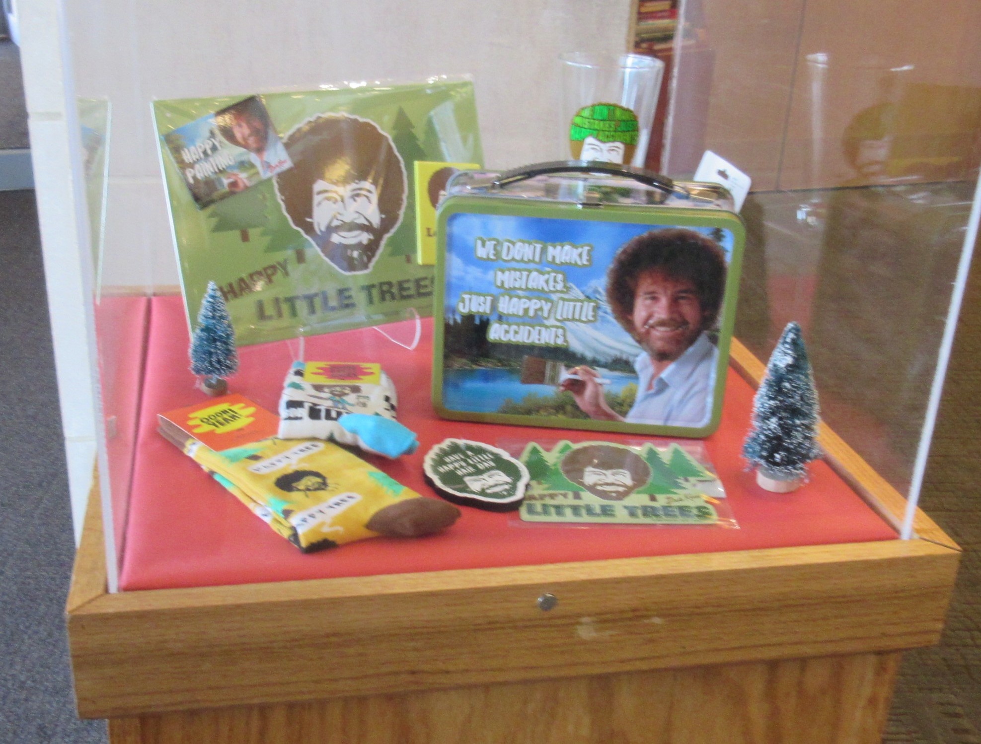 Bob Ross Pez and Bob Ross bobblehead. These are merely display items, but you can buy the Bob Ross Chia Head in the gift shop.