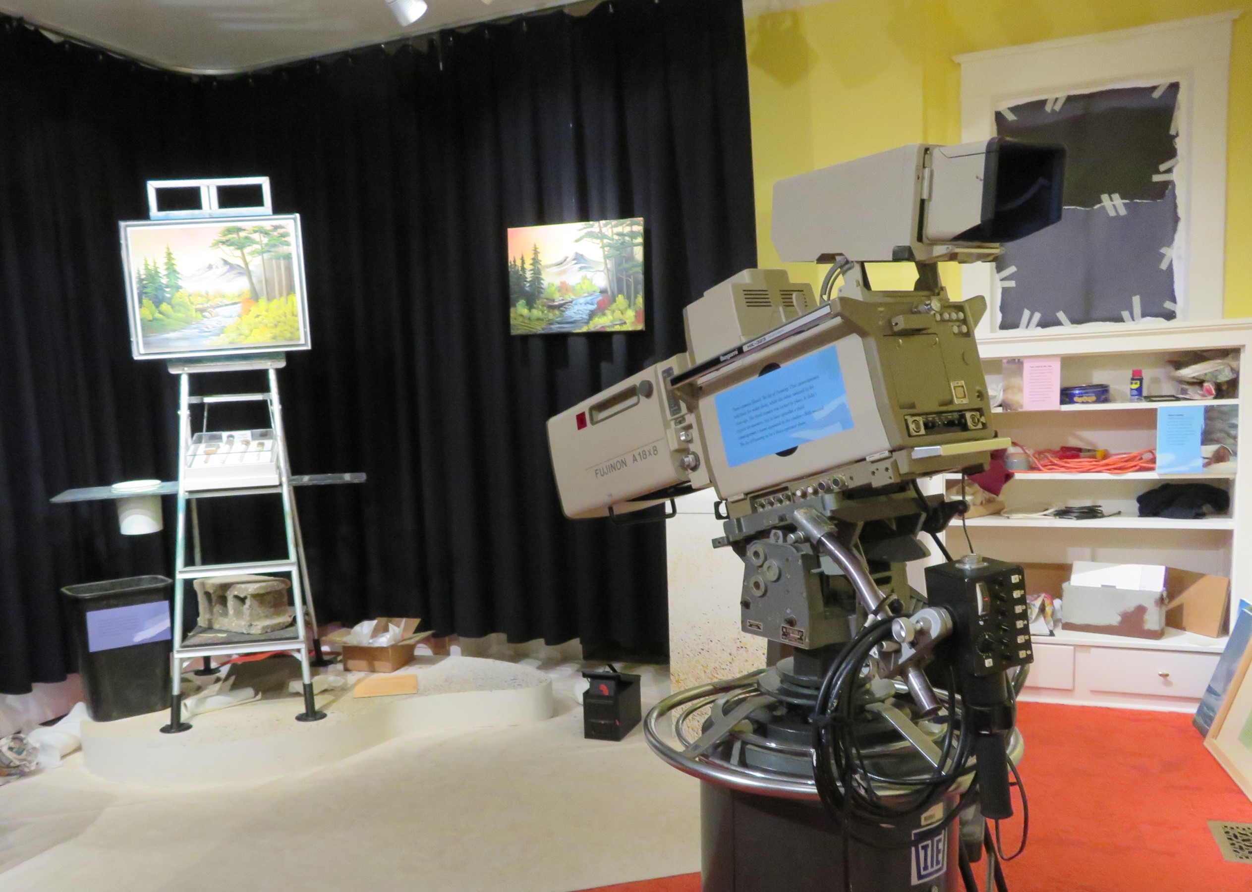 Bob and his stalwart crew filmed 390 episodes of the Emmy Award-winning The Joy of Painting at the Lucius L. Ball Home, former residence of the family who gave nearby Ball State University their name. (That’s not every episode, mind you. Season one was in Virginia.) Minnetrista has owned the house since the late ’80s. Last year they converted it from its previous uses into a Bob Ross shrine of sorts, with the old equipment, studio decor and knickknacks brought back in to the very room where Bob and friends made the magic happen.