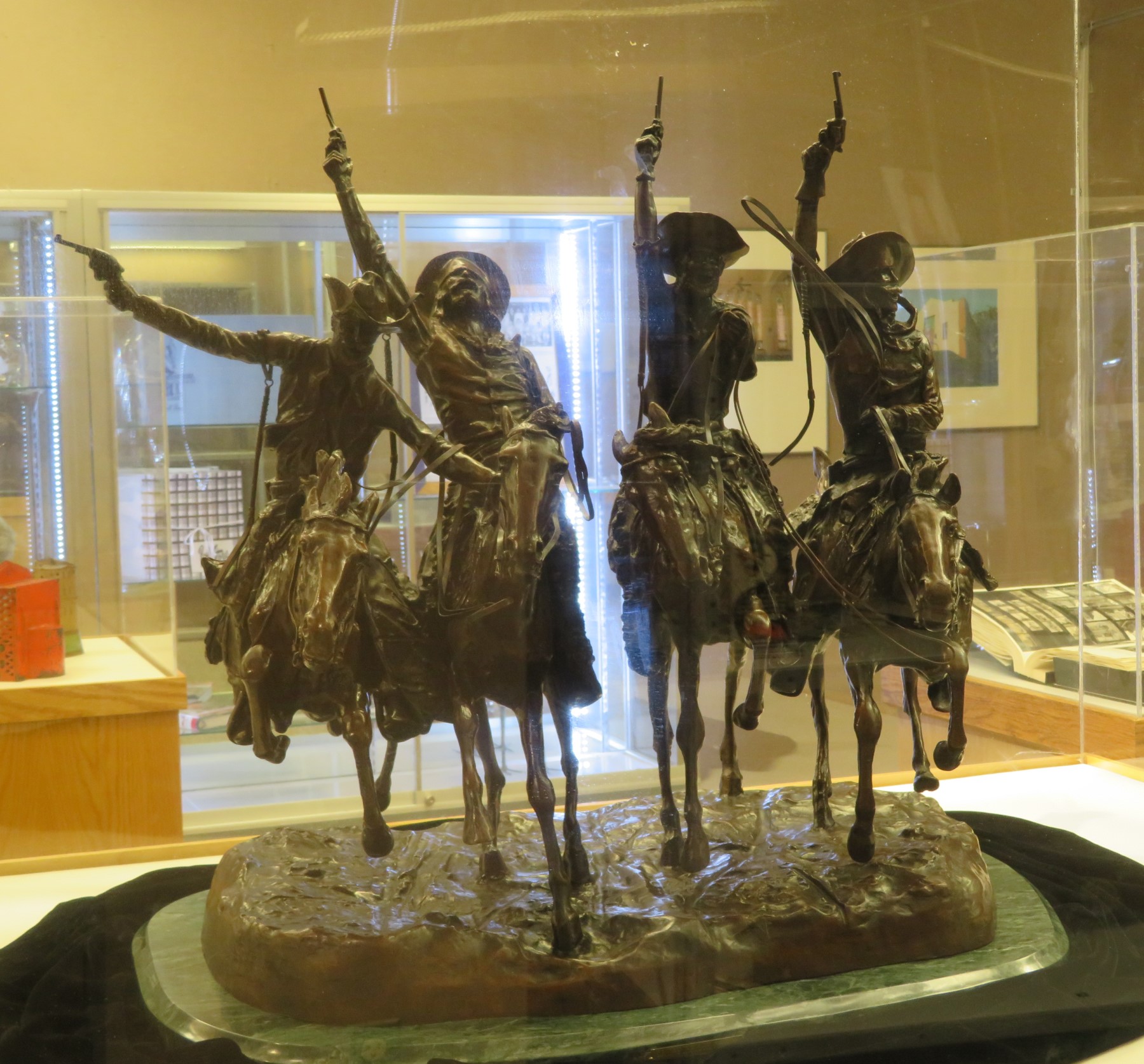 A bronze recast of Frederic Remington’s 1902 classic “Coming Through the Rye”. Curiously, we’ve run across these four horsemen before in a different size and state.