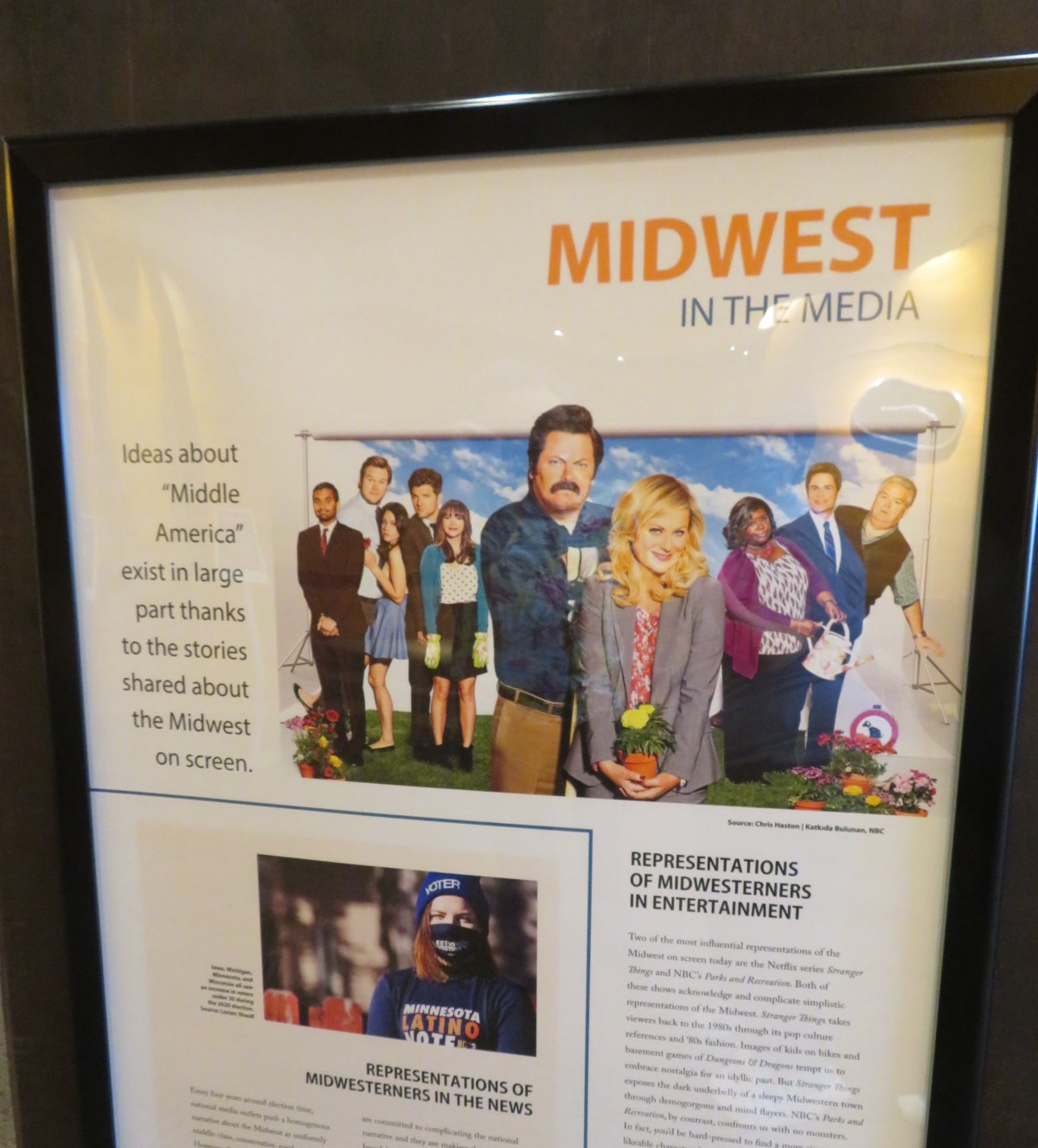 Other vitrines and displays in the lobby are devoted to history, local affairs, racism, pride, and here’s me gratuitously gravitating toward the one with Parks and Rec on it.