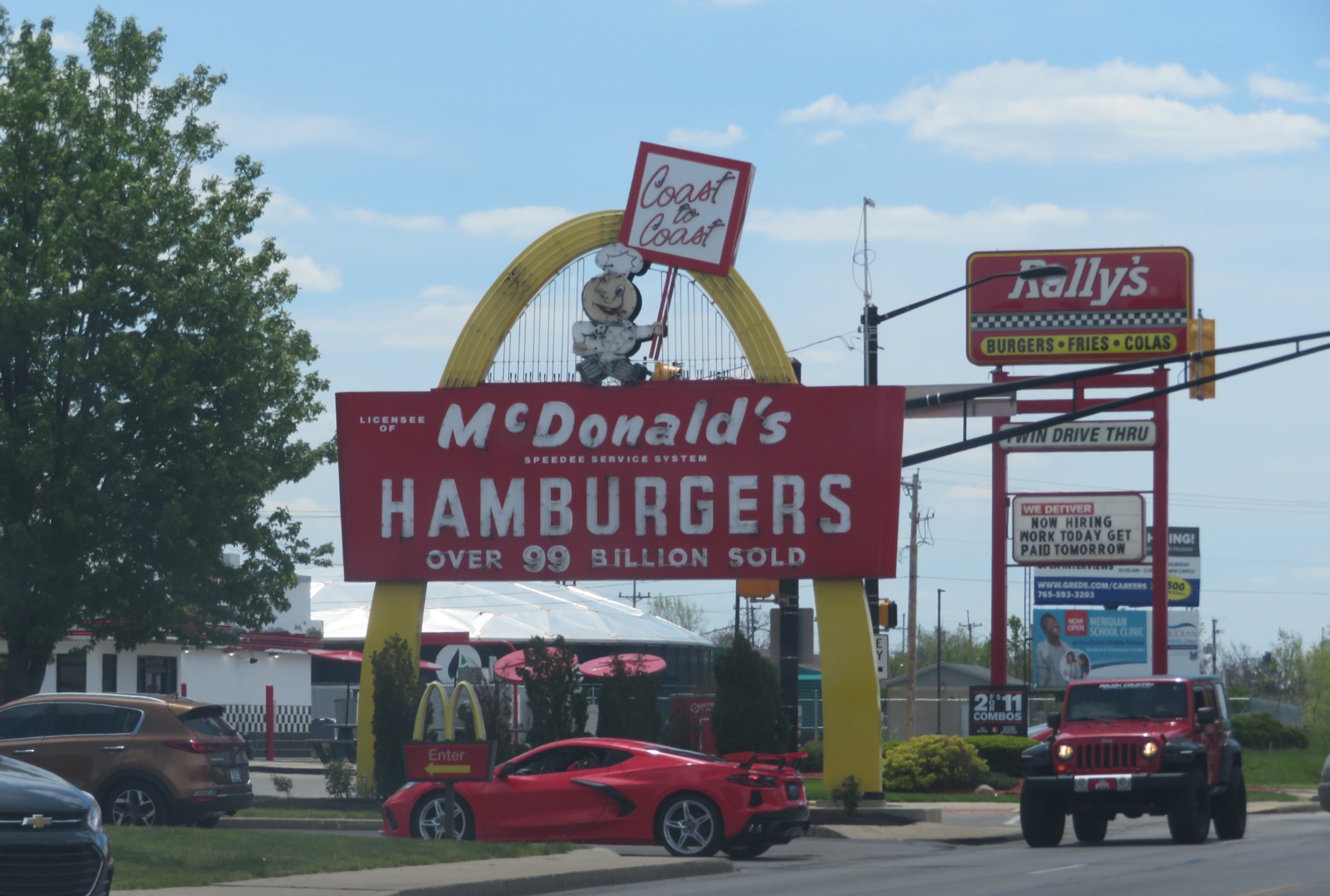 Also big and old: an old-school McDonald’s sign. Immediately after I snapped this, the sports car reversed and sped off, either daunted by the backed-up drive-thru or scared that we might rat them out to their snooty rich friends.