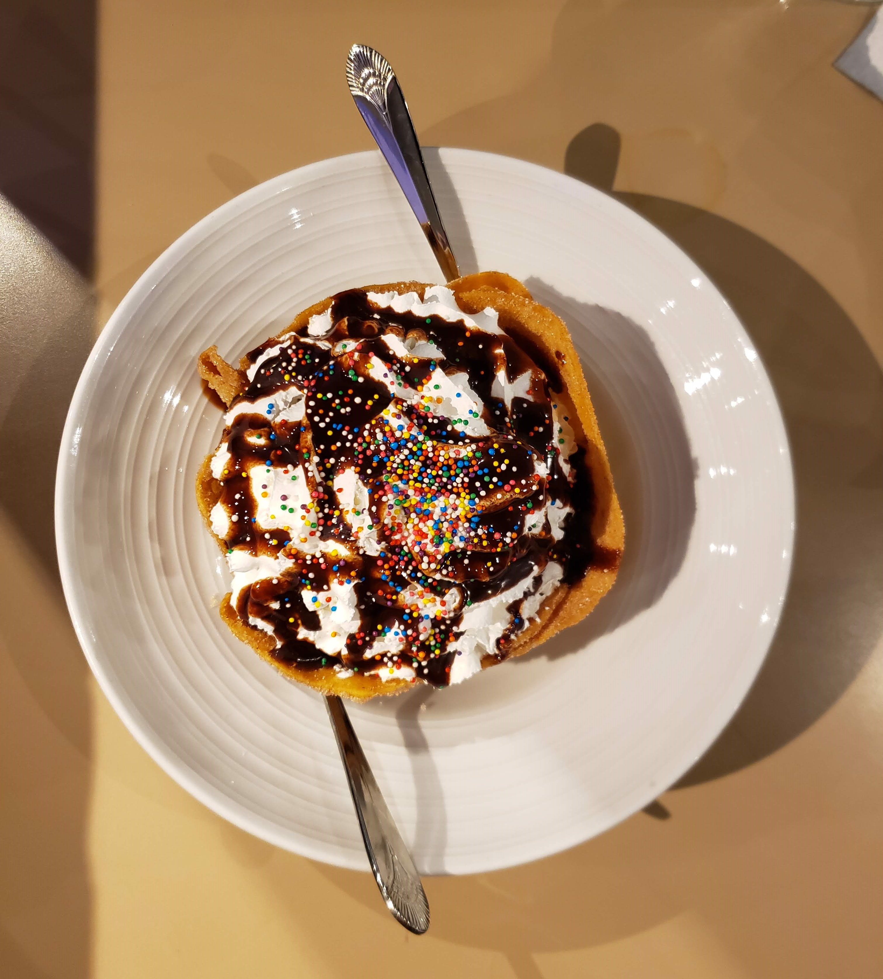Speaking of which, our lead photo is another teaser image from that same trip, whose requisite MCC miniseries is coming soon and will include follow-ups to previous vacations, such as this glimpse of our brief return to the Mitchell Corn Palace in South Dakota. For value-added photogenic goodness, enclosed below is the Tequila Sunrise fried ice cream we shared for dessert.