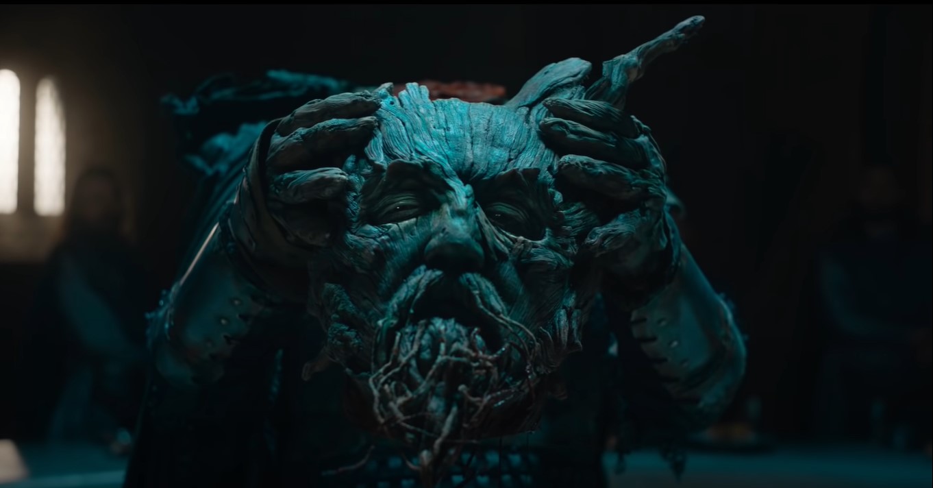 Hey, look, it’s that one actor!: At the King’s side, his equally unnamed queen is Kate Dickie, the mom from The Witch (who shares no winking exchanges with her old friend Ineson behind his very convincing Walking Whomping Willow getup). Also unnamed is Gawain’s mom, played by Sarita Choudhury (Jessica Jones season 3) as a wielder of witchcraft with an agenda known only to her.