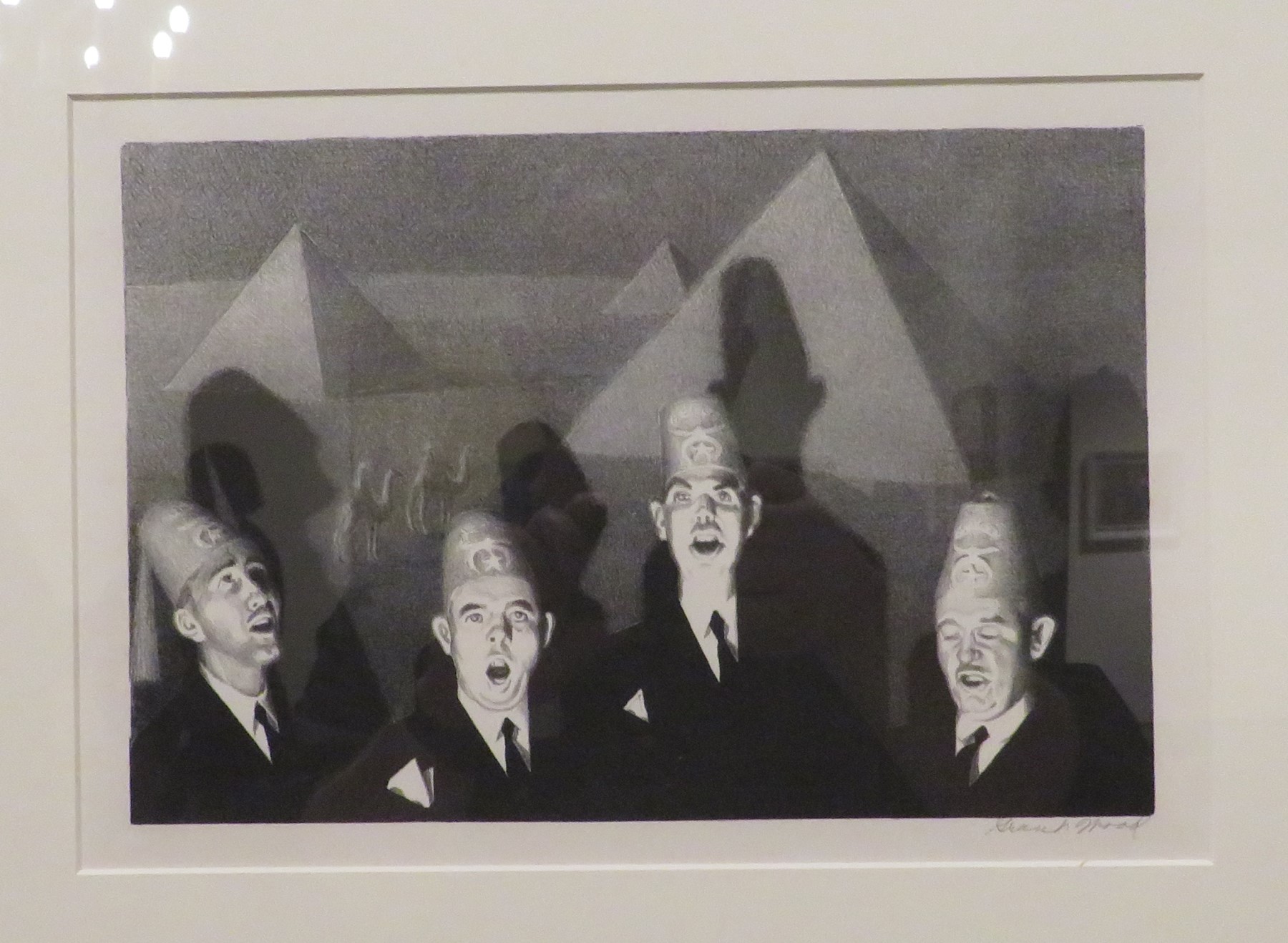 1930 is when his most famous creation was unveiled, the iconic American Gothic. The original hangs today at the Art Institute of Chicago, where Anne and I saw it in person two years ago and couldn’t believe the real thing hung right there in front of us. Anyone with a passing knowledge of art might consider Wood a one-hit wonder, with American Gothic his biggest chart topper. Much as some hardcore ’80s music fans will rush to point out Men Without Hats had a second minor hit in “Pop Goes the World”, some Iowans might contend Wood had other worthy works in his portfolio.