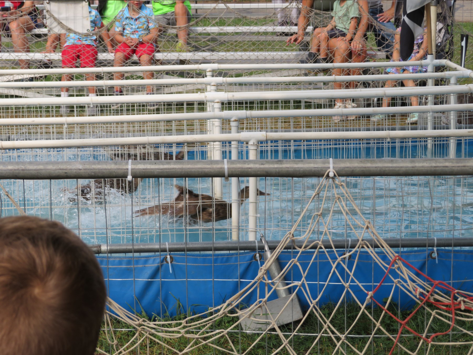 Once they turned off the background music that included such best-forgotten tunes as “Disco Duck”, the signal was given and the race was on. The human handlers were told they could aid their ducks in two ways to a speedier victory: by shouting words of encouragement that they couldn’t possibly understand because they are ducks, or by splashing water at their butts and presumably spurring them onward and away, in case tiny man-made waves might jolt them somehow. In theory this would make the volunteers feel more involved in the process and more participatory in the victory. In reality, each race lasted a maximum of 1.50 seconds and was over before either of us could snap a camera button more than twice.