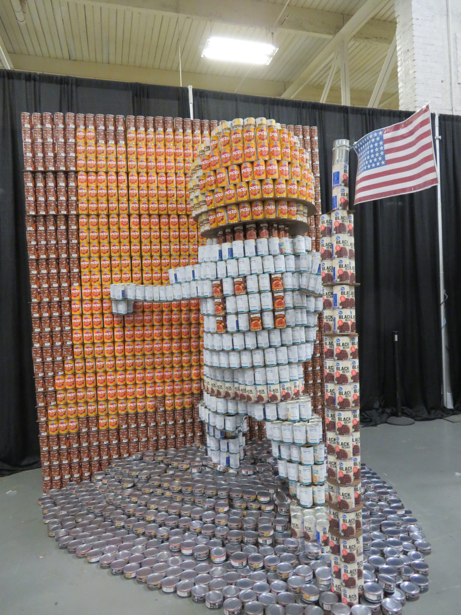 A recurring feature at the State Fair and in our resultant photo galleries is the canned-food sculpture contest over at the Agricultural/Horticultural Building. Each year teams build a recognizable person, place or thing entirely from canned foods and win prizes; then the cans are donated to charity. While the needy receive kindly assistance, the sculptures live on only in photos. This year’s competition seemed slimmer than usual, but a few rose to the challenge.