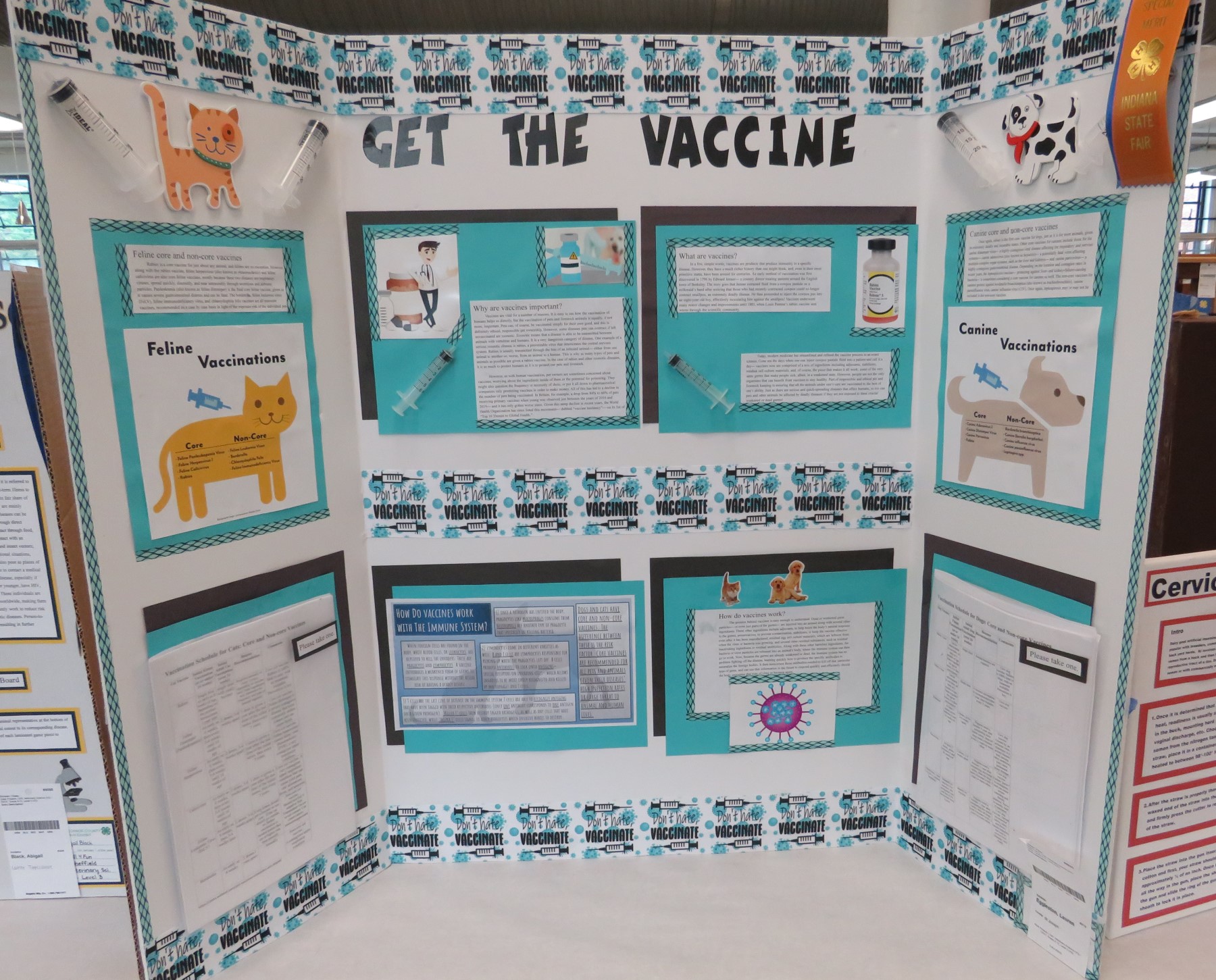 A clever inversion of a common refrain: this exhibit is actually about the importance of pet vaccines. FOR YOUR PETS.