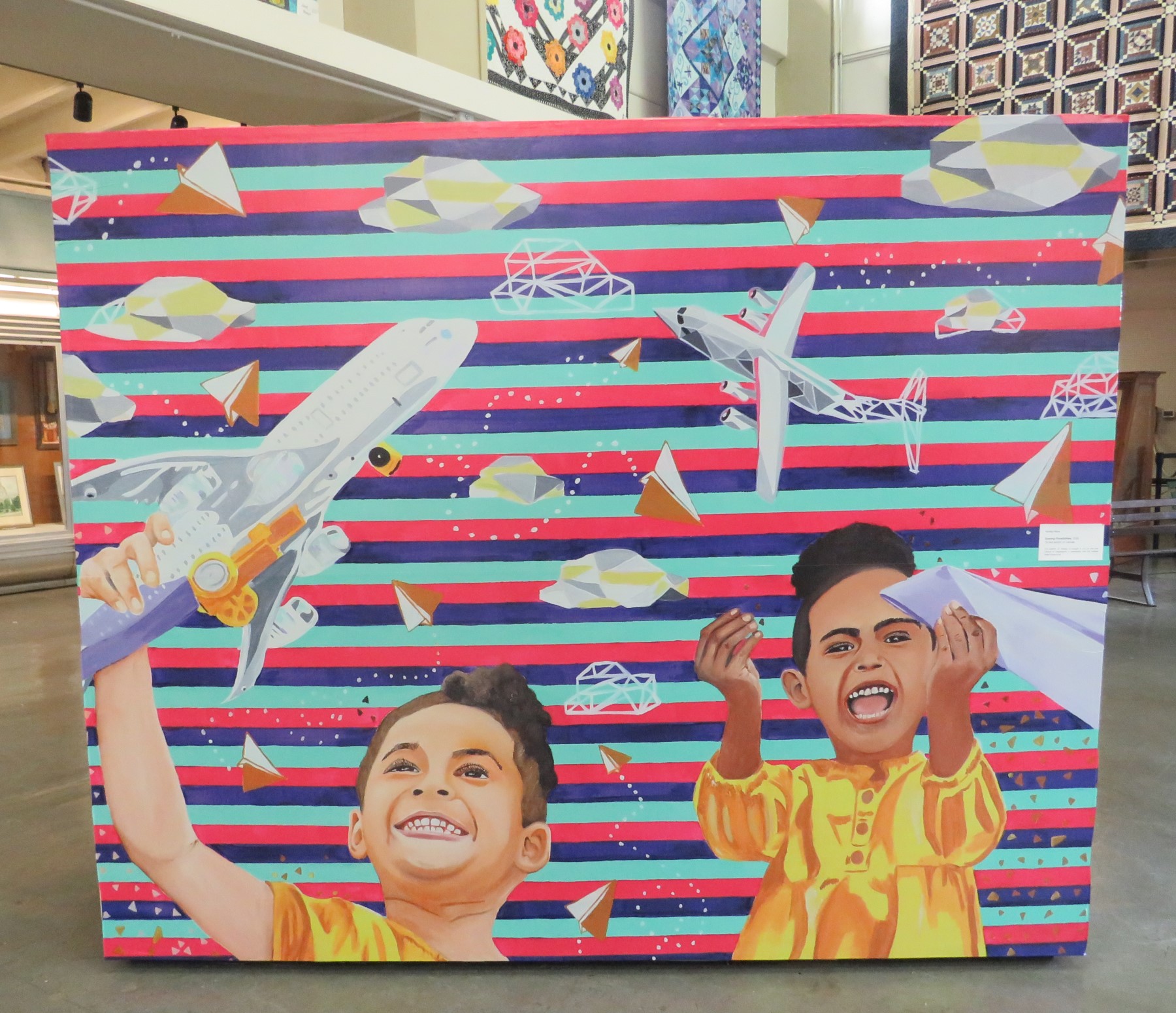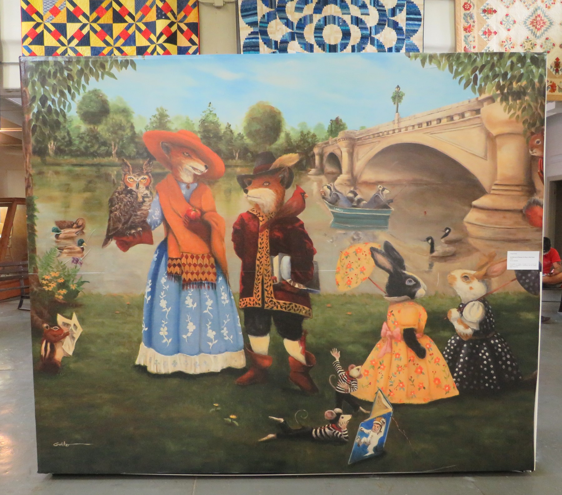 One new feature I don’t recall seeing before: giant, upright-piano-sized paintings at the Indiana Arts Building. When I was a kid, it was called the Home & Family Arts Building. At some point when we weren’t looking, they changed the name so it doesn’t sound like one big home economics classroom. For all I know, it may once have been exactly that. Now it’s all about the artwork, and fewer cooking demos.