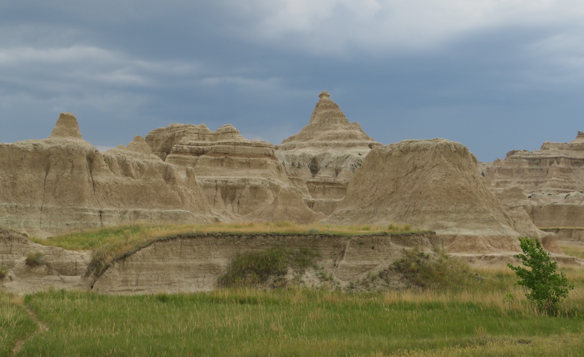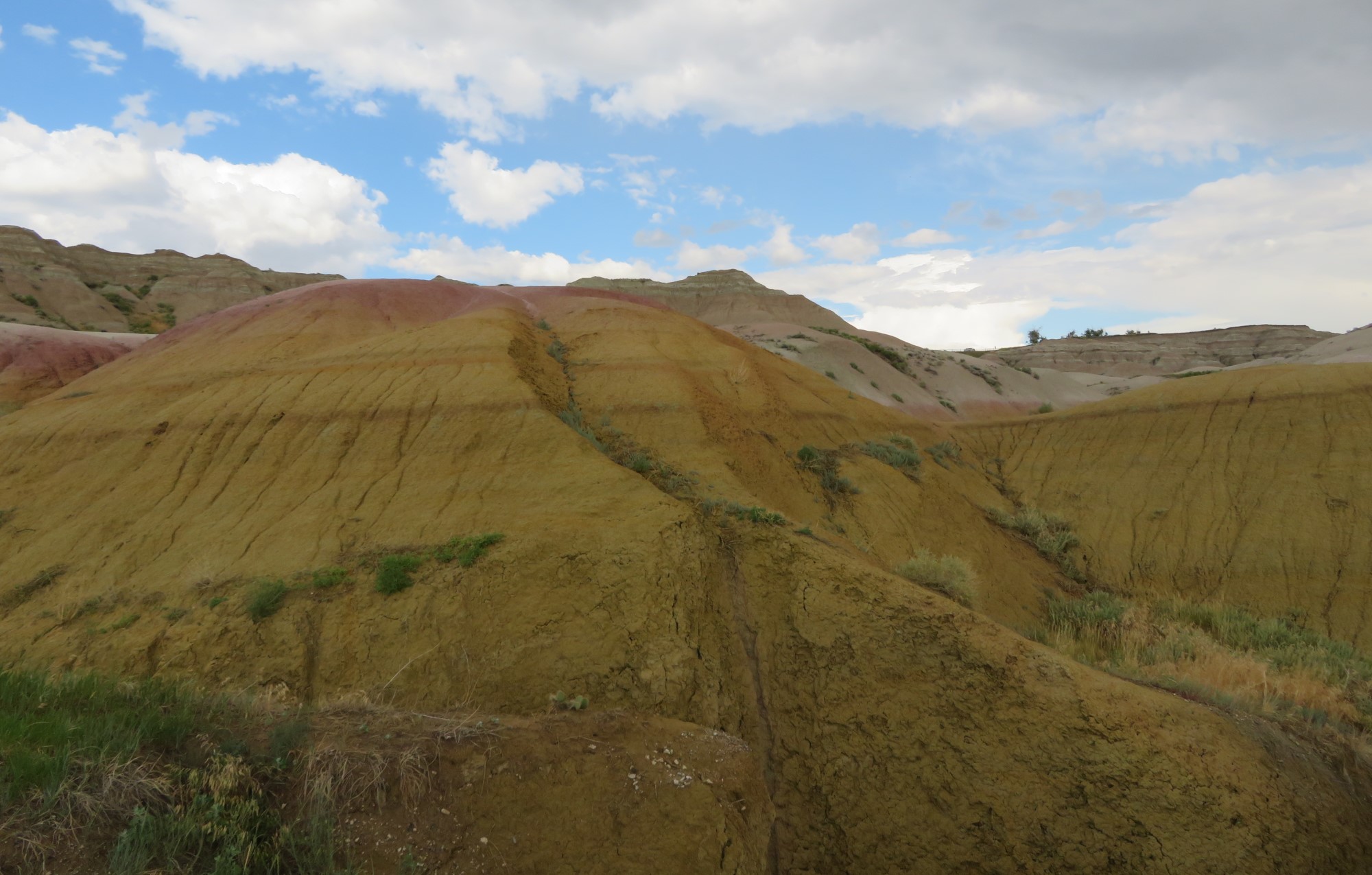 South Dakota achieved statehood in 1889. The Badlands preexisted our occupation, but have been viewed as capital-M Monuments since only 1929 and weren’t labeled a National Park until 1978. I assume the paperwork took a while. Travelers can navigate and sightsee the Badlands via twenty-odd miles of convenient highway. We parked a few times at different locations throughout and walked around at length, just enjoying the vistas, walking over mounds, climbing up miniature cliffsides, avoiding suspected rattlesnake harbors…