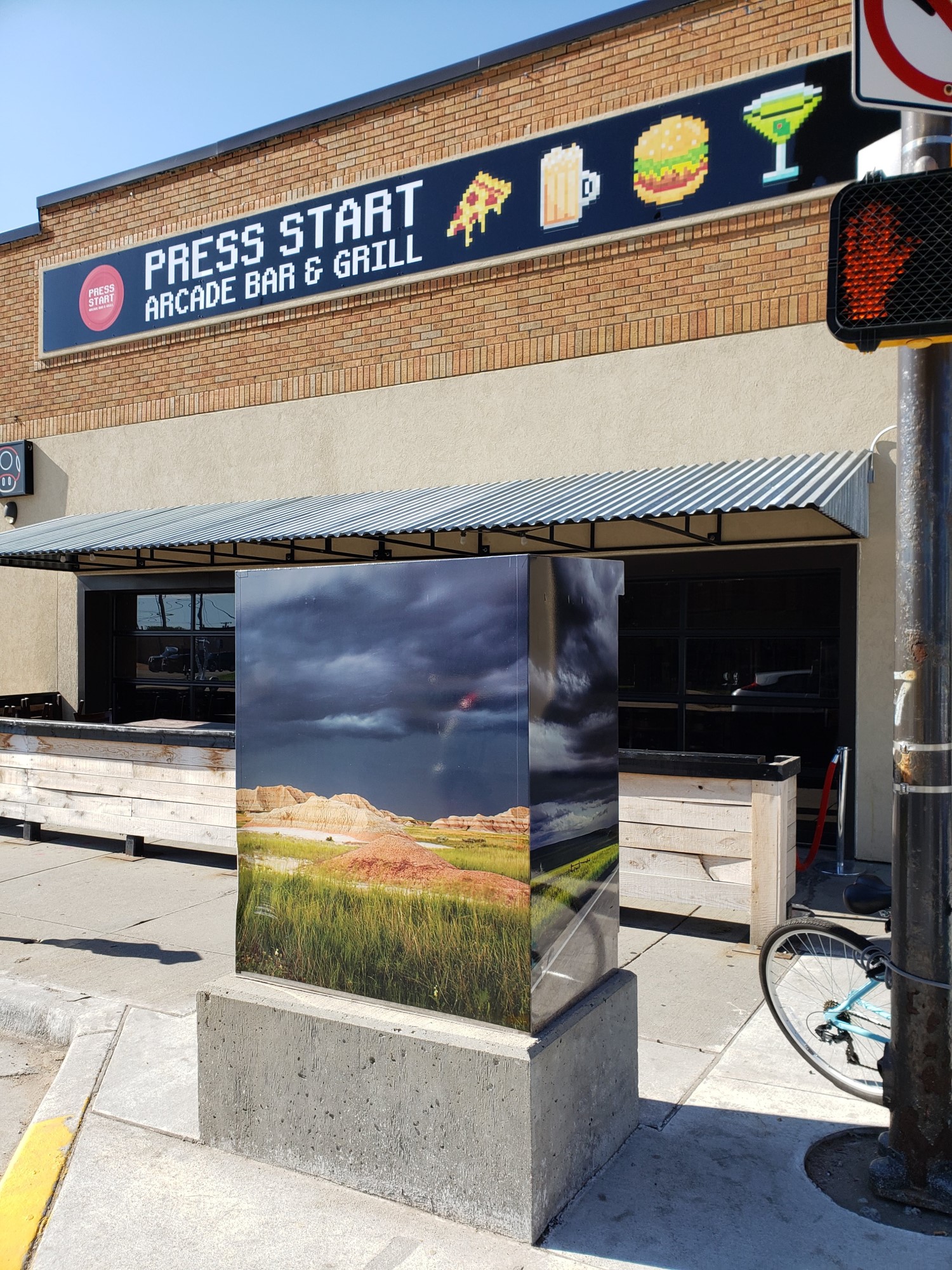 Downtown Rapid City’s second-most prevalent medium is electrical box painting. (Or “utility box”, whichever. Check with licensed lingo authorities in your region before referencing.) We’ve seen this practice in other cities (including back home), but Rapid City residents really had a ball with it.