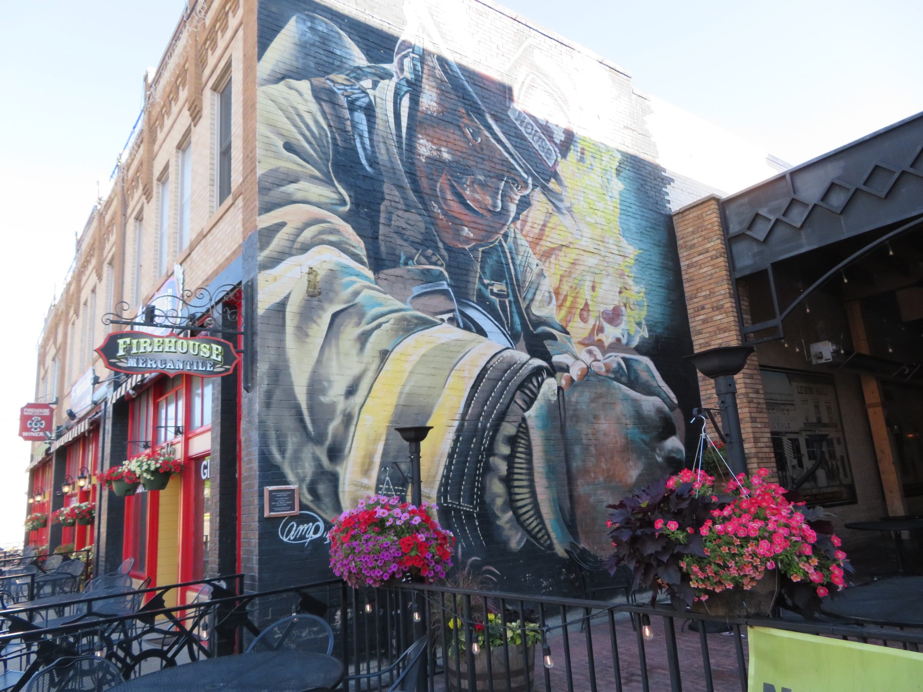 Firefighter tribute on the side of Firehouse Brewing Company by Aaron Pearcy, a local muralist and tattoo artist.
