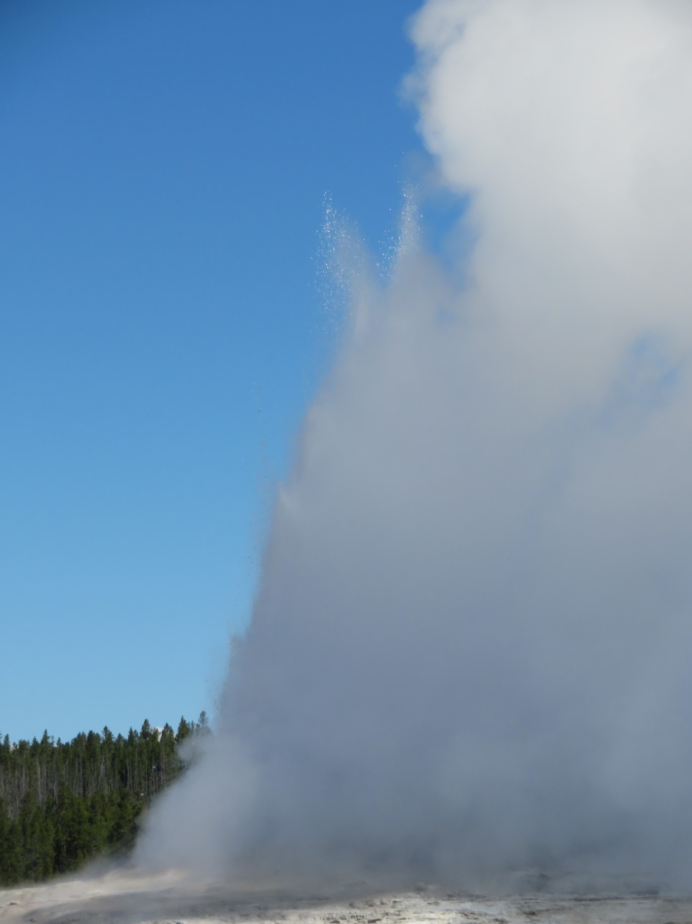 Other natural wonders around Yellowstone were prettier and more colorful, but watching THE Old Faithful was conceptually cool in the moment, live and in person, sharing that experience of natural splendor with a bunch of strangers who set aside their differences for a few minutes of vacation solidarity in which, consciously or otherwise, we all agreed this was ten thousand times cooler than staying locked up at home and shrieking at each other online over real or imaginary sins.