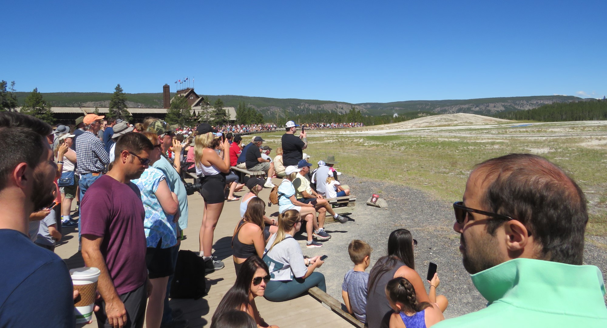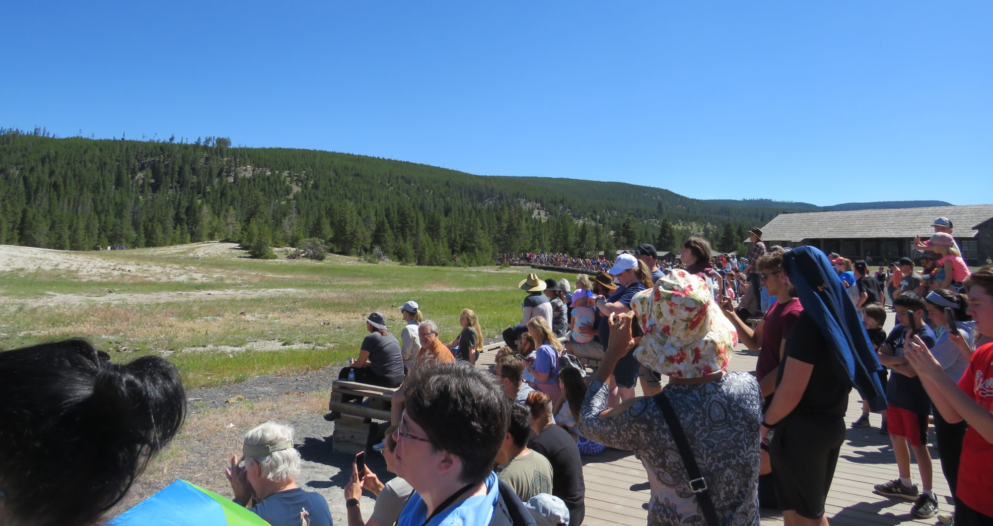 Once it was apparent to all that the performance had dwindled back to mere steaming and Old Faithful would offer no real encore, everyone deserted the walkway, rushed to the nearest restrooms and restaurants, lined up en masse and probably spent the rest of the day complaining about how there were just way too many people here.