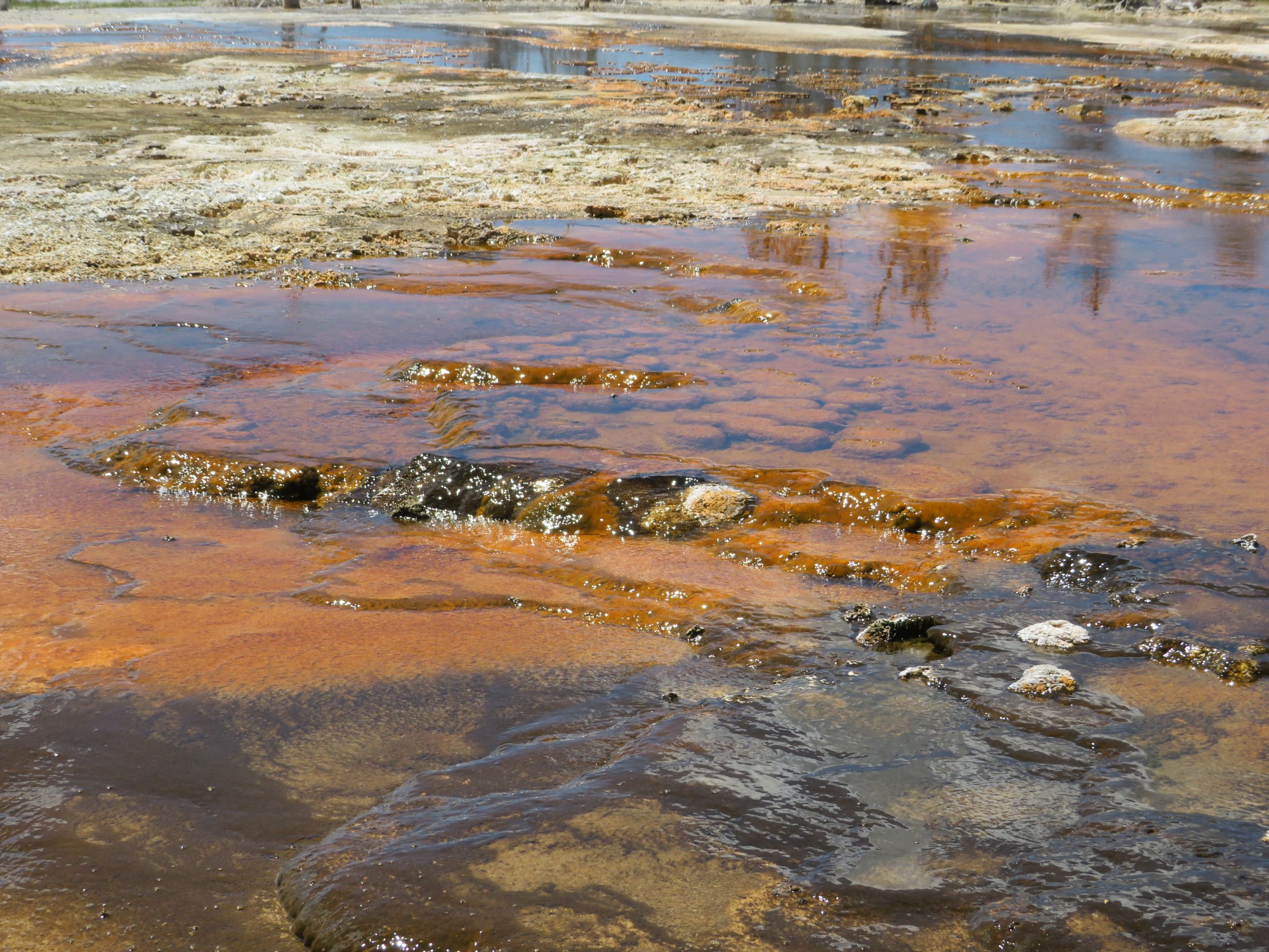 How does a stream the color of strained peas lead to crystal blue water without ruining it? Thermophiles!