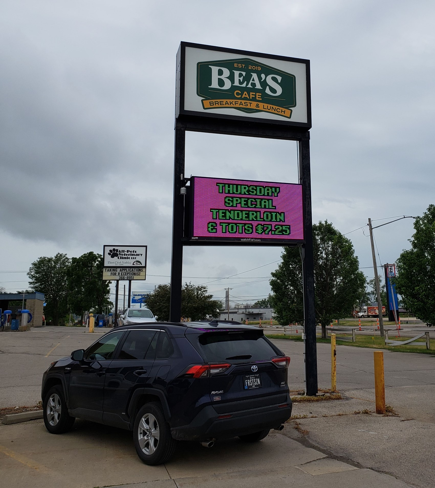 SATURDAY 6/26, BREAKFAST: One block the other direction from our hotel was Bea’s Cafe, bearing that name since November 2019. It was every bit the mom-‘n’-pop diner we’d imagined, in a good way. All aspects were tiptop, we discussed family and pets with our server, and the other cheery customers filling roughly half the tables were likely their regular crowd.
