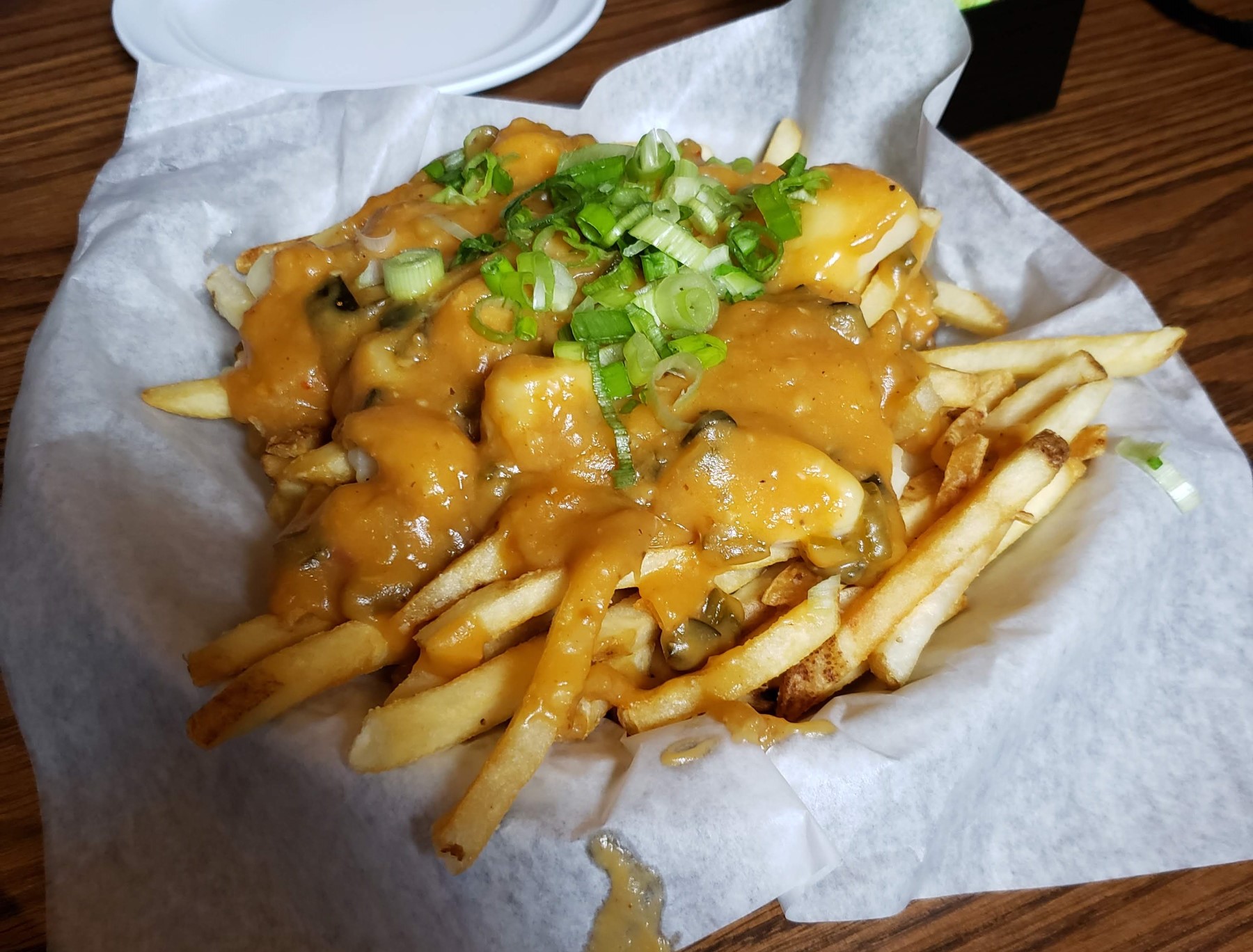 Our appetizer, the Santa Fe quasi-poutine: fries topped with pulled pork, green chili “gravy”, and queso fresco.