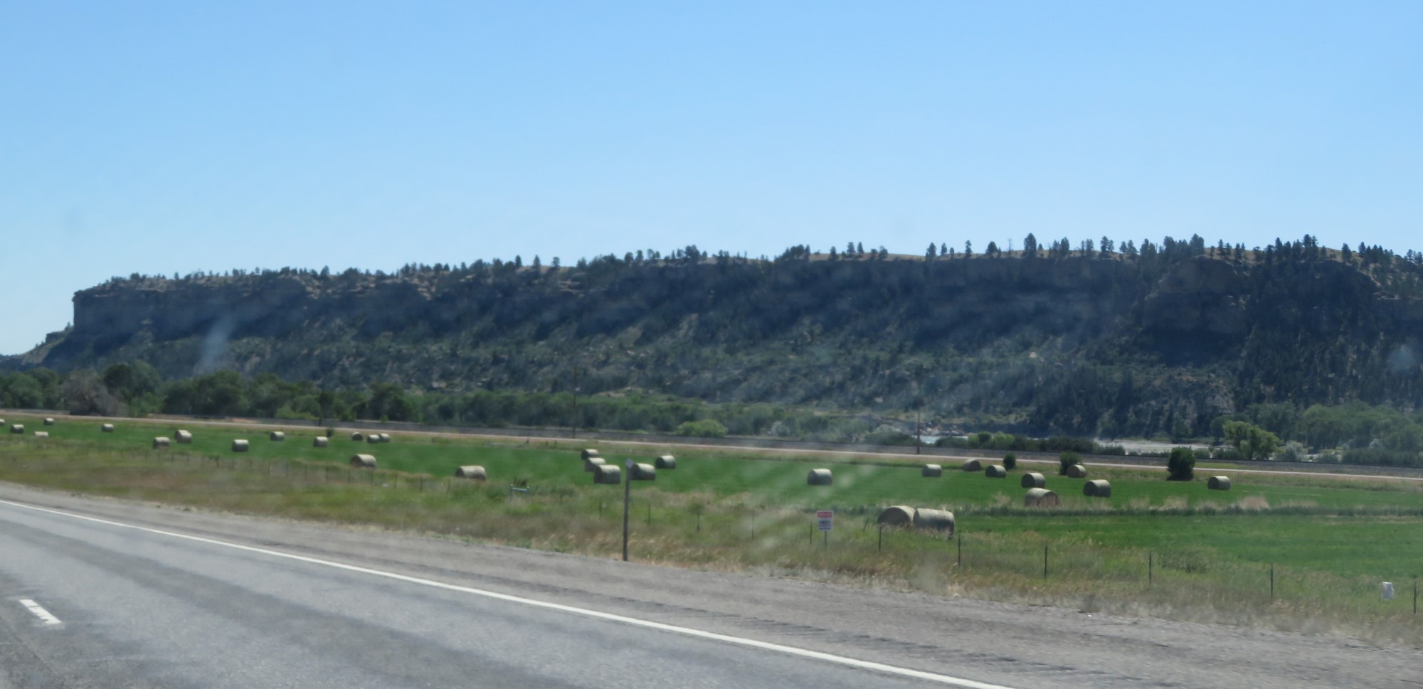 …and took the highway out of tiny Gardiner to I-90, where we’d spend the next several hours enjoying our first full day in Montana. Luckily for us we’d toured Yellowstone before the record-setting heat wave that overtook western North America in our wake. Over the course of the next few hundred miles Anne took photos of our surroundings and insisted I concentrate on driving. Competing traffic and anything resembling a congested road would prove not to be a problem. At all.