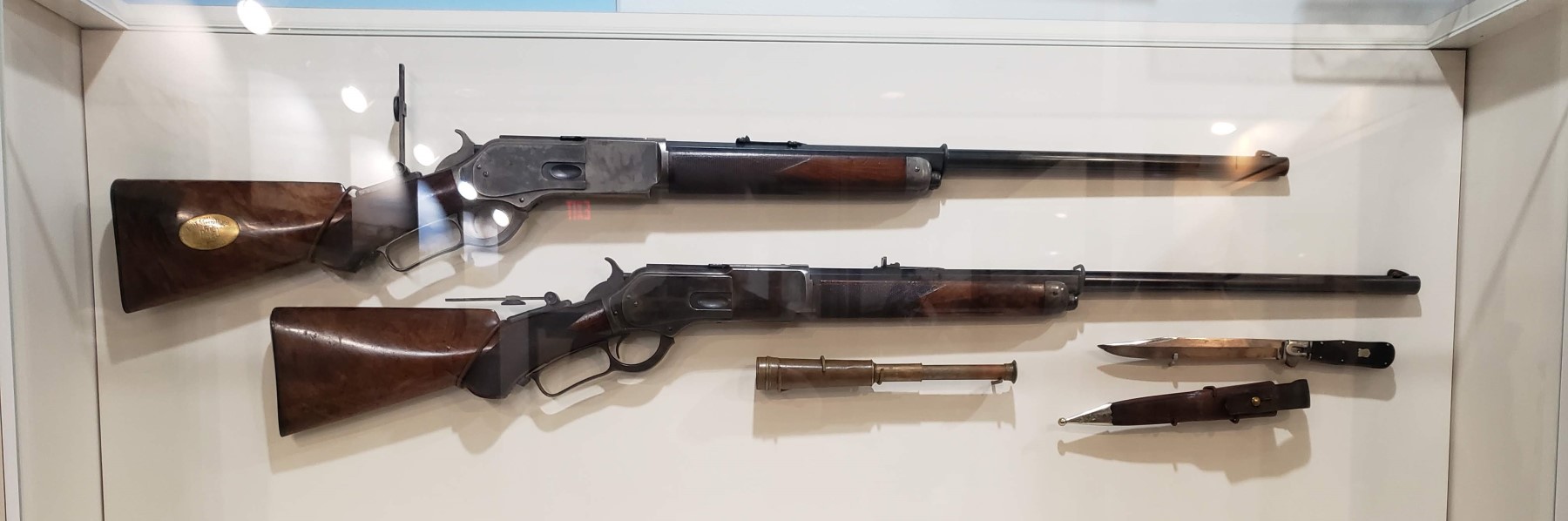A pair of 1876 Winchester 50-95 rifles he brought along on an 1884 hunting trip in the Bighorn Mountains.