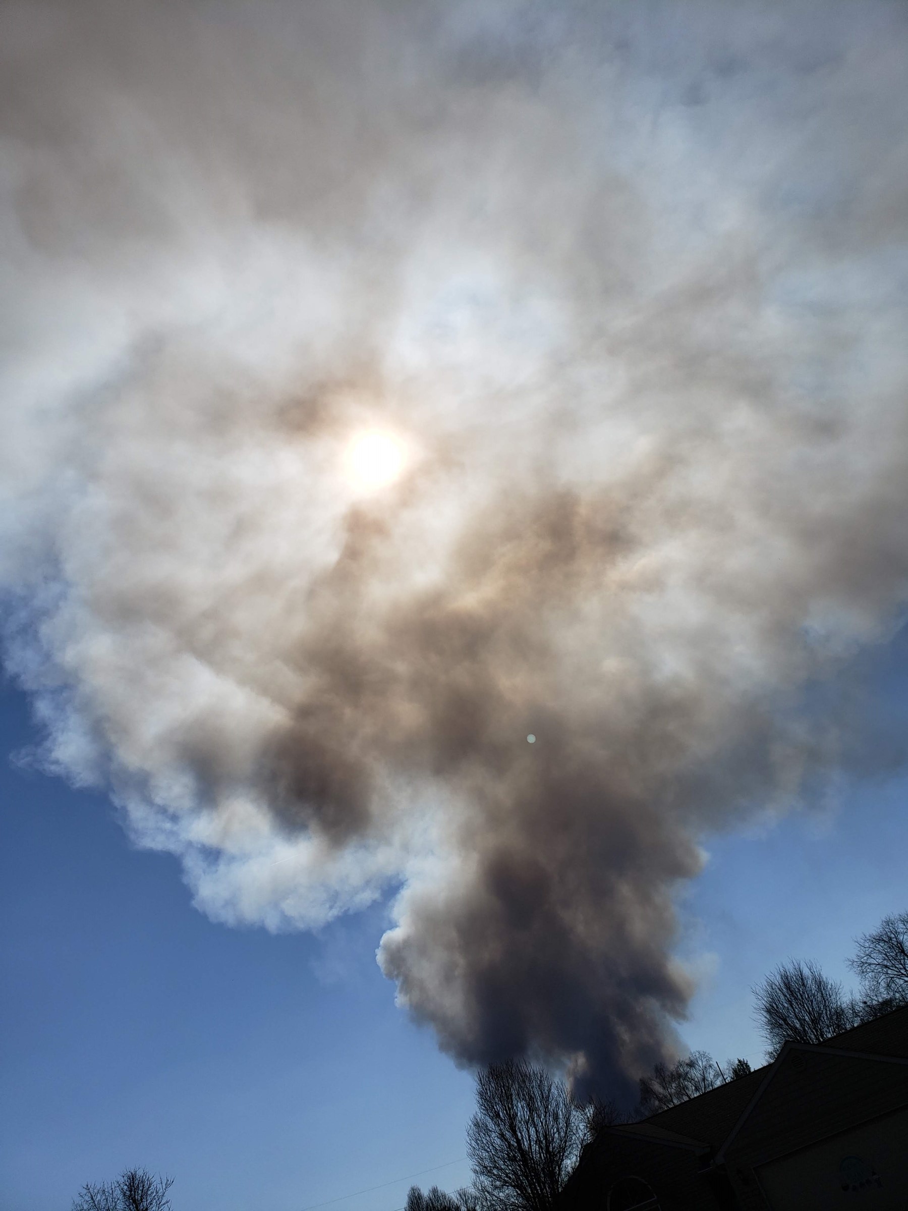 Wednesday afternoon I was working from home at the kitchen table, on the opposite end of the house from all the really good windows, when Anne came rushing out from our library room, where she holes up five days a week with her own WFH job and one window that faces our neighbor’s vinyl siding, and announced the biggest news overtaking her Facebook feed among our locals: the Walmart distribution center in Plainfield was on fire. We don’t normally run out the doors to watch fires, especially when they’re five miles away. Then I followed her outside and caught the quasi-apocalyptic vibe.
