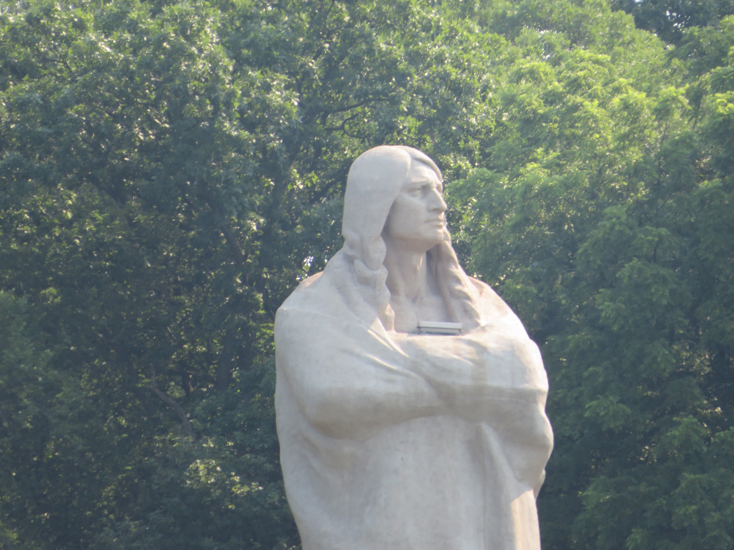 On the park’s west edge stands the sizable work officially named The Eternal Indian. Completed in 1910 by sculptor Lorado Taft and artist/engineer John G. Prasuhn as a tribute to all Native Americans in general, the more popularly labeled Black Hawk Statue — named after a Sauk leader whom it reportedly doesn’t much resemble — stands 48 feet tall, looms 125 feet above the Rock River, and was made from concrete and two tons of granite chips with a wooden tower in the center.
