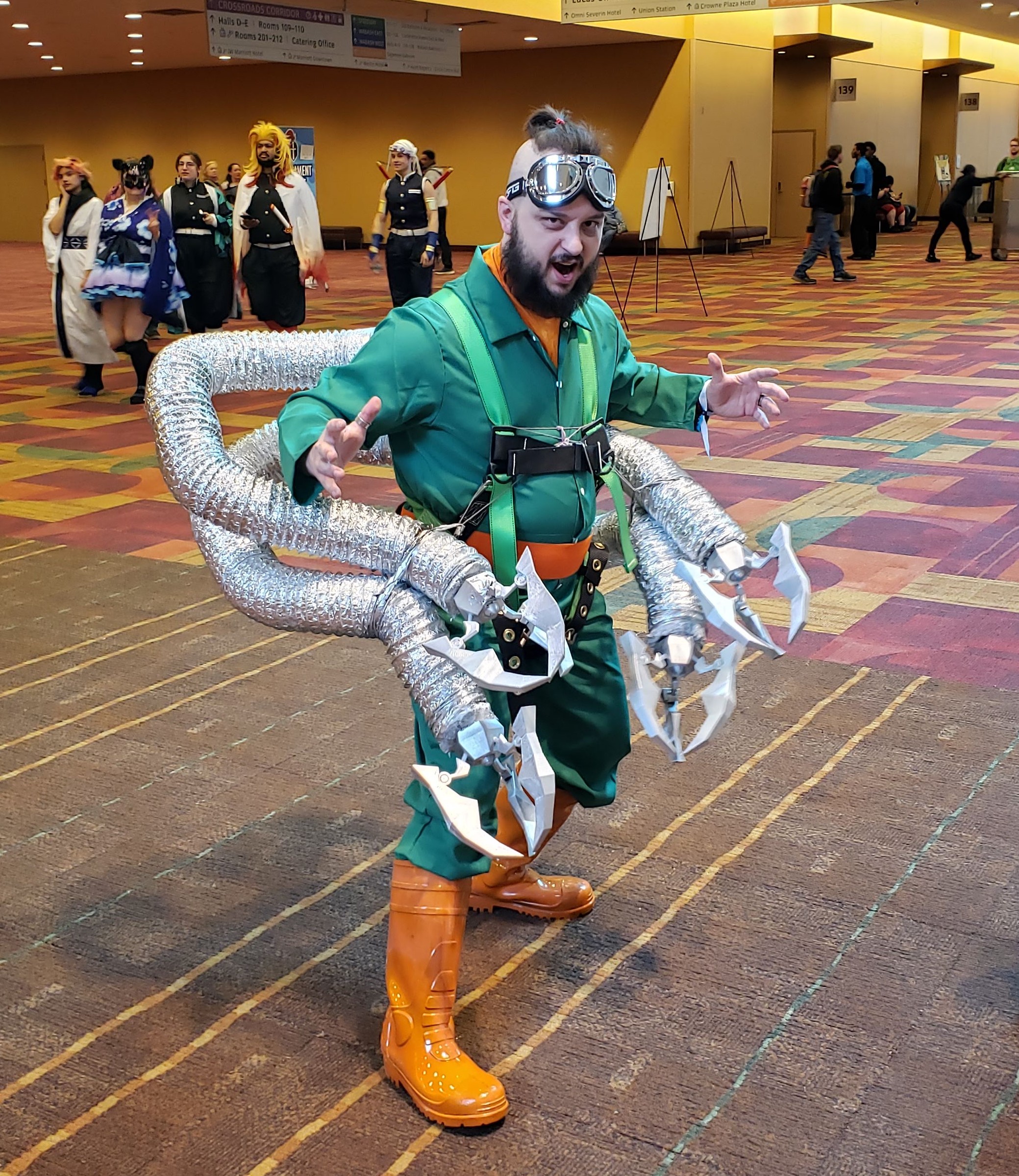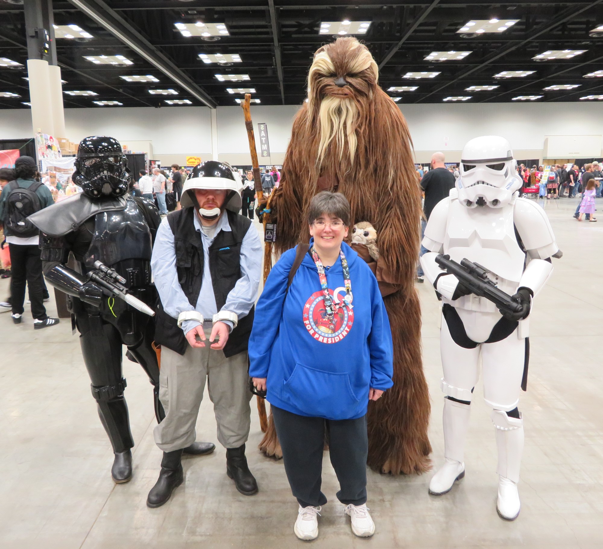 It’s that time again! This weekend my wife Anne and I attended the eighth edition of the Indiana Comic Convention at the Indiana Convention Center in scenic downtown Indianapolis. It was formerly called simply “Indiana Comic Con”, then subjected to light cosmetic rephrasing after the owners of the San Diego Comic Con were bitten by a radioactive ambulance chaser and began suing other comic cons in a desperate attempt to prevent the very common phrase “comic con” from becoming a very common phrase for comic cons, as very commonly used by every comic-con attendee ever. Anyone who actually calls it “the Indiana Comic Convention” either has a mandatory work-related reason to do so or far too many neckties in their closet.