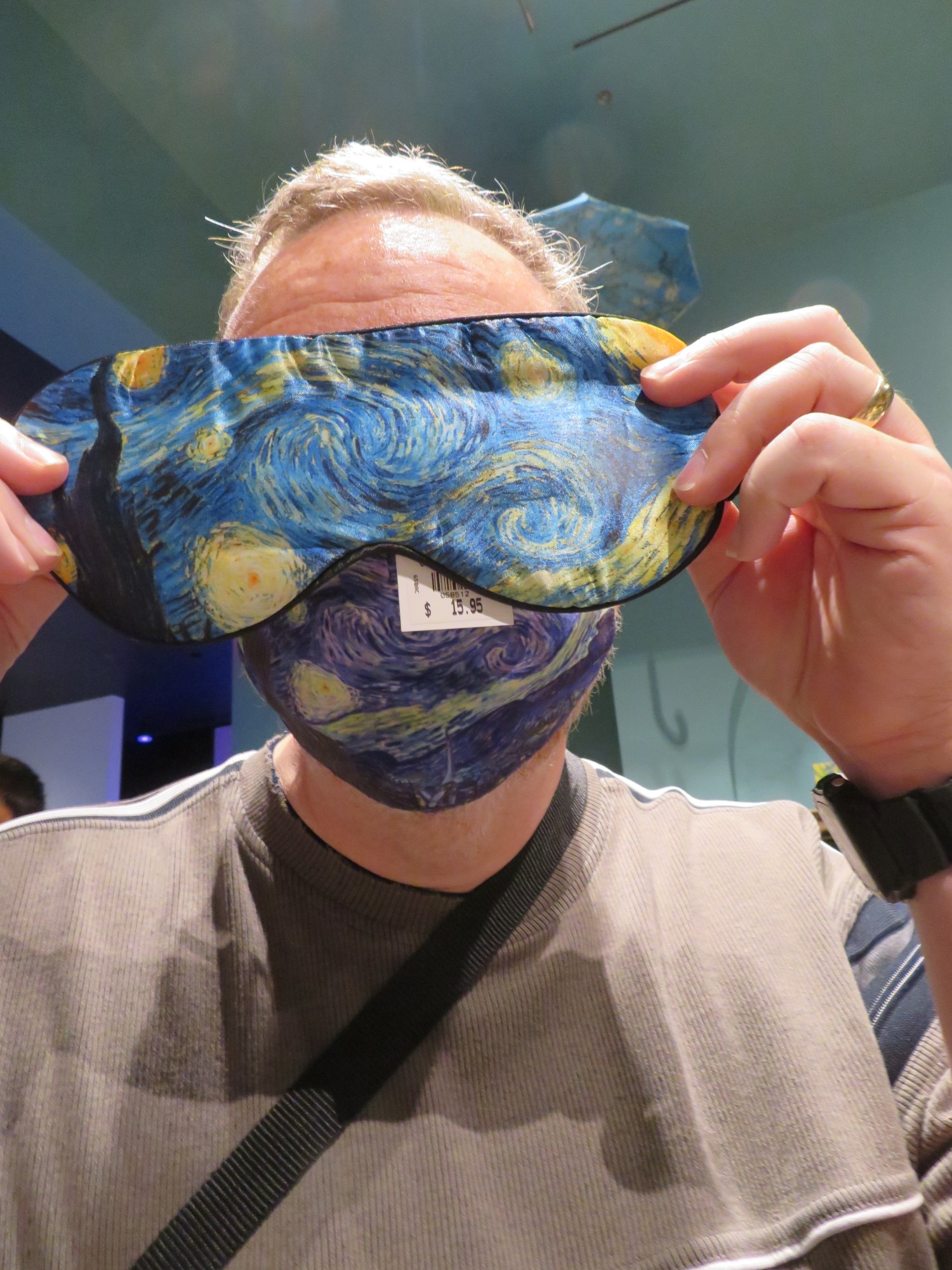 Naturally there was a gift shop at the end of the trail, where I could buy a “Starry Night” sleeping mask to go with my “Starry Night” COVID mask.